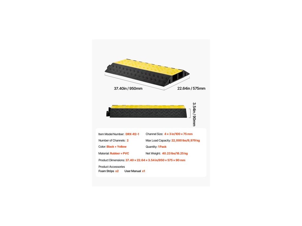 Rozměry kanálu: 100 x 75 mm,Počet kanálů: 2,Barva: Černá + Žlutá,Číslo modelu položky: DRX-R2-1,Maximální nosnost: 9 979 kg (náprava),Množství: 1 balení,Materiál: Guma + PVC