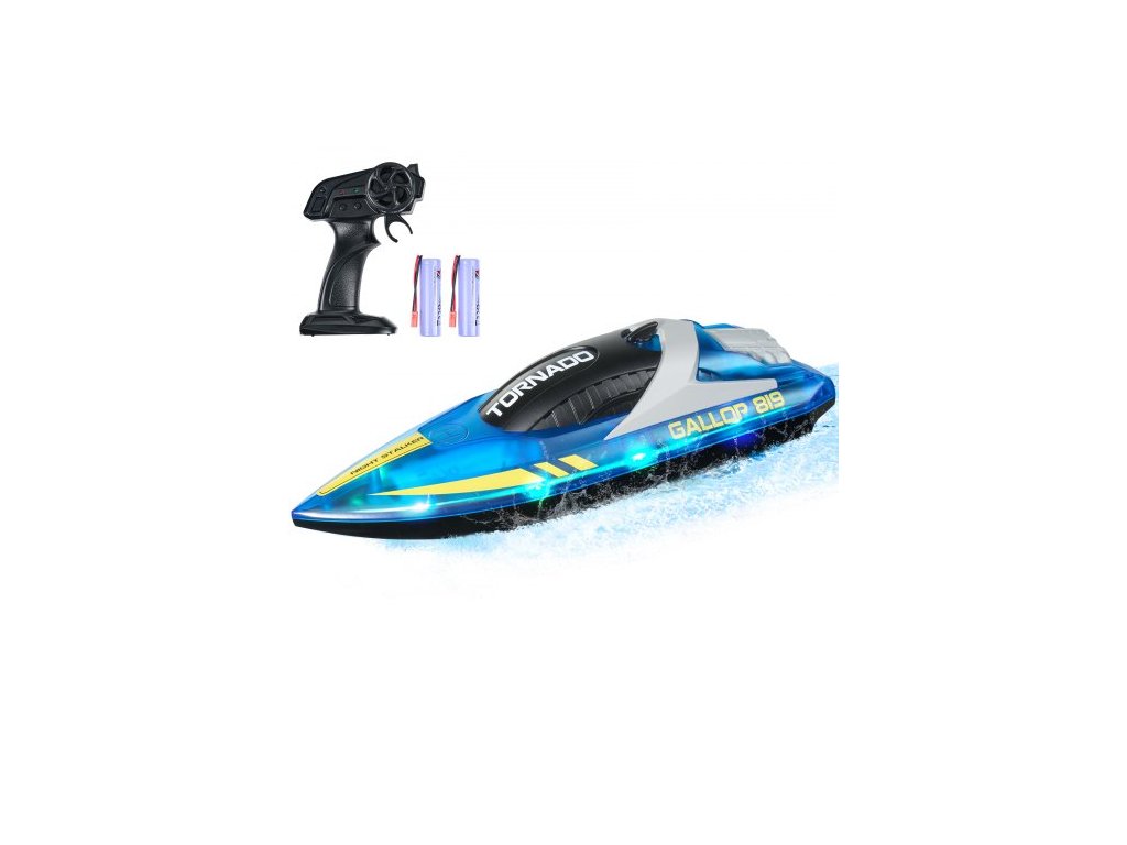 RC člun , 2,4 GHz 12 km/h, dálkově ovládaný člun pro bazény a jezera, závodní člun s LED světlem, 2 dobíjecí baterie, vodotěsný pro celé tělo, vodní hračka jako dárek pro dospělé, chlapce a dívky, modrý