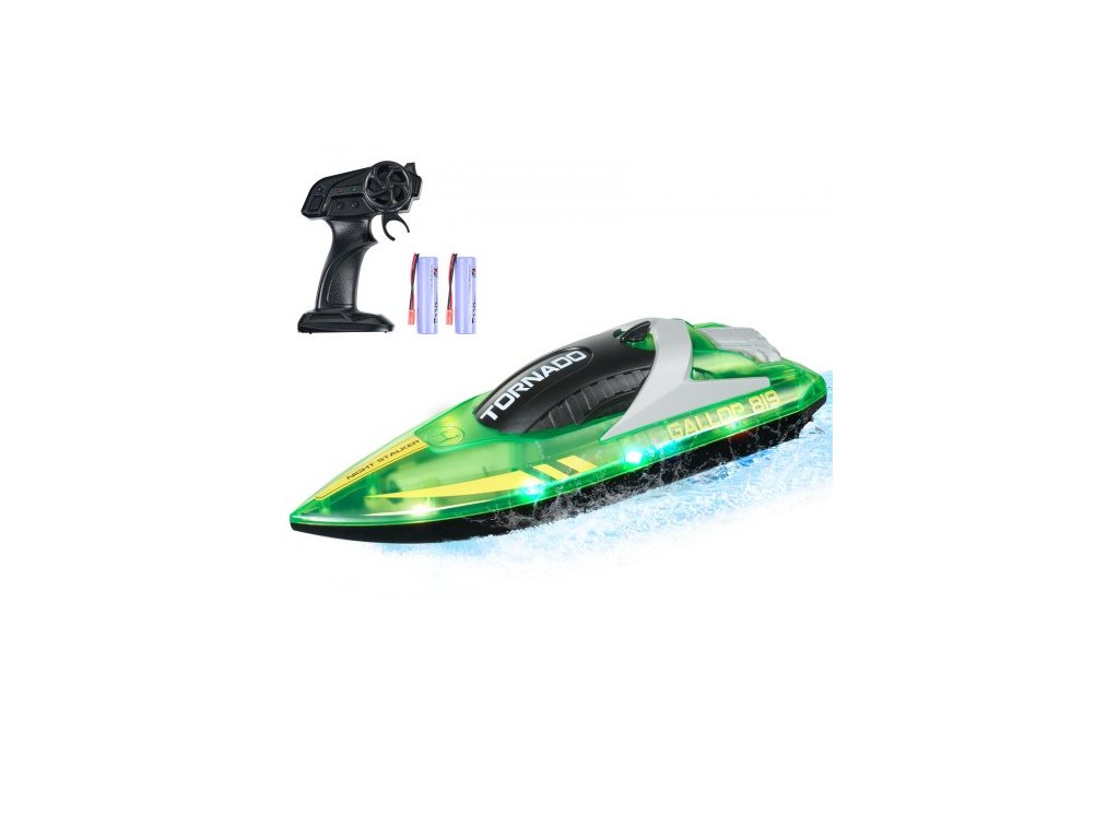RC člun , 2,4 GHz 12 km/h, Člun na dálkové ovládání pro bazény a jezera, Závodní člun s LED světlem, 2 dobíjecí baterie, Vodotěsný po celé tělo, Hračka na vodní hry jako dárek pro dospělé, chlapce a dívky, Zelený