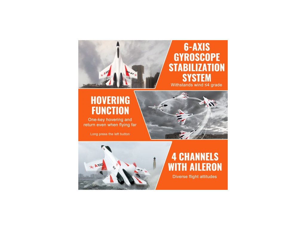 Materiál vrtule: Slitina a ABS,Rozměry výrobku: 16,5 x 13,2 x 4,9 palce/420 x 335 x 125 mm,Design: Stíhací,Materiál těla: EPP,Kapacita baterie: 300 mAh x 2,Dosah dálkového ovládání: 656'/200 m,Gyroskopický stabilizátor: 6osý,Asistované ovládání: Režim 3D/6G,Číslo modelu položky: A100,Kaskadéřské akce: Dálkové ovládání s jedním klíčem a smyčkou, Hmotnost výrobku: 0,75 lbs/0,34 kg, Počet kanálů dálkového ovládání: 4, Rozpětí křídel: 13,2 palce/33,5 cm