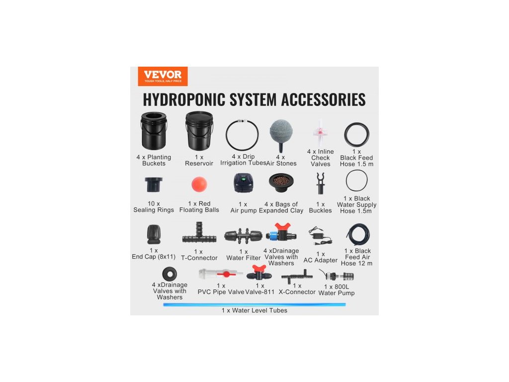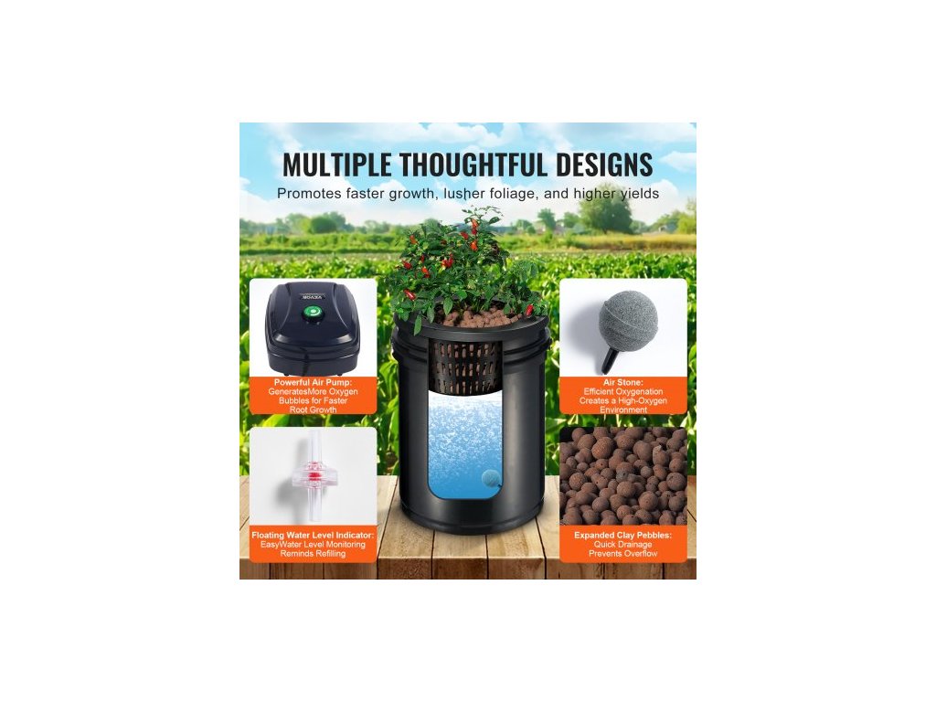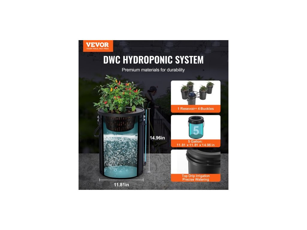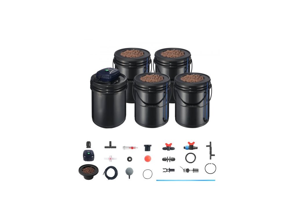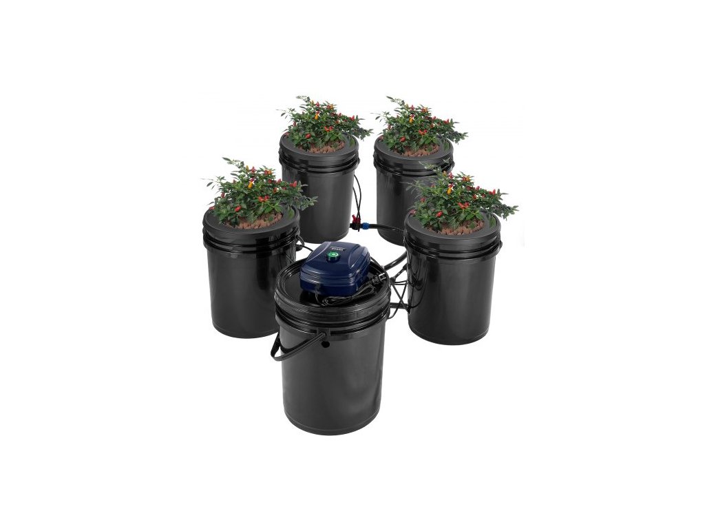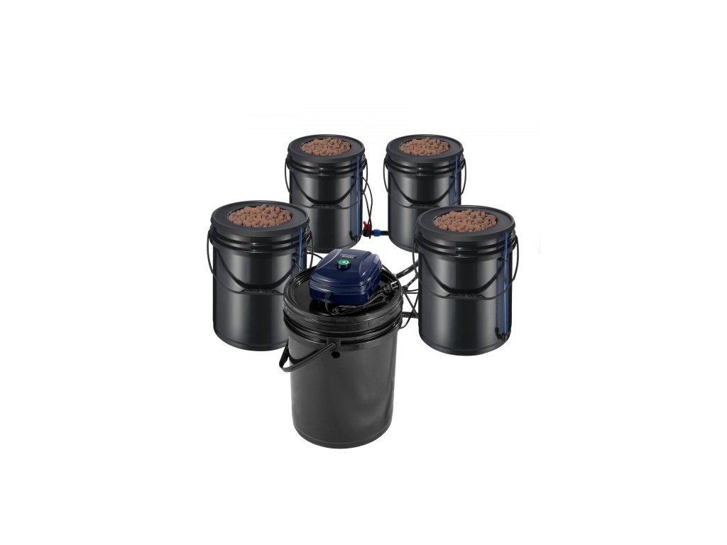 Hydroponický systém RDWC s recirkulací hluboké vody, 4 kbelíky 18,9 l