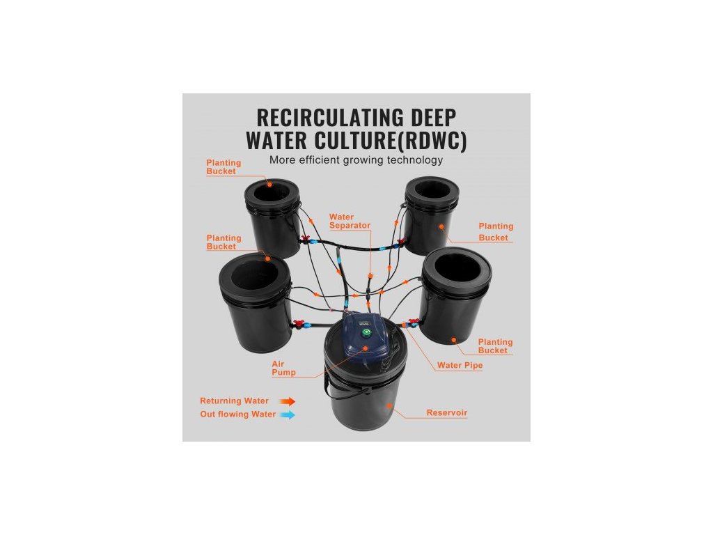 RDWC Hydroponický systém s recirkulací hlubokovodní kultivace 4 kbelíky 18,9 l