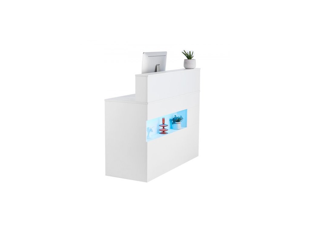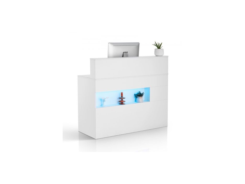 Recepční stůl , obdélníkový pultový stůl s LED osvětlením, 122,7 x 46,7 x 94,9 cm, kancelářský recepční stůl s LED osvětlením, 2 zásuvkami a zásuvkami, pro pokladny, vstupní halu, kosmetický salon a kancelář, bílý