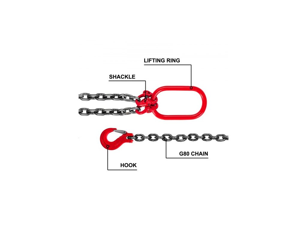 Nosnost: 8800 liber/4 t, Délka řetězu: 5'/1,5 m, Materiál: Manganová ocel G80, 35CrMo, Průměr řetězu: 3/8''/10 mm