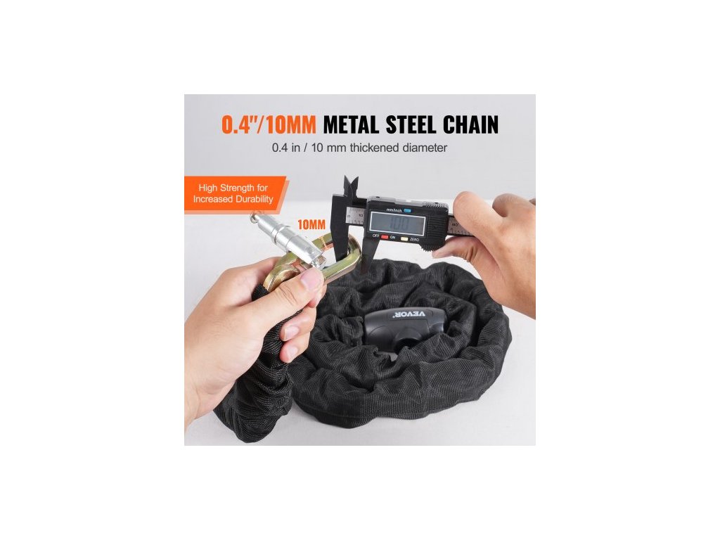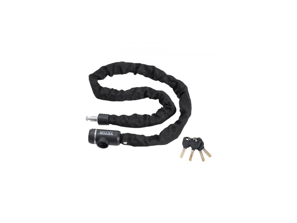 Celková délka: 47,24 palce / 1200 mm,Barva krytu: Černá,Zamykací mechanismus: Zámek na klíč,Tvar řetězu: 4článkový,Klíče: 3,Model: 85902,Materiál krytu: Měkká tkanina,Hmotnost výrobku: 5,51 lbs / 2,5 kg,Styl: Integrovaný zámek na řetěz,Materiál řetězu: Kovová ocel,Rozměry výrobku: ?0,39 x 47,24 palce / ?10 x 1200 mm,Průměr řetězu: 0,39 palce / 10 mm