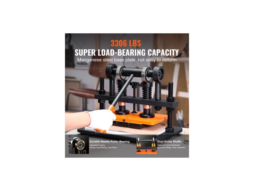 Řezačka kůže , ruční vyřezávací stroj na embosovací desku 25,9 x 15 cm, zdvih 1,2 cm, stroj na embosovací desku do kůže, dvojité vodicí hřídele, vyřezávací stroj pro různé materiály