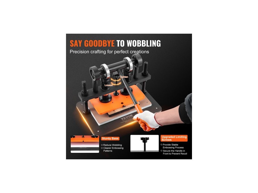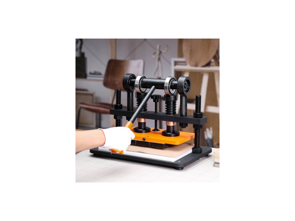 Řezačka kůže , embosovací deska 25,9 x 15 cm, ruční vyřezávací stroj, zdvih 1,2 cm, embosovací stroj na kůži, dvojité vodicí hřídele, vyřezávací stroj pro různé materiály