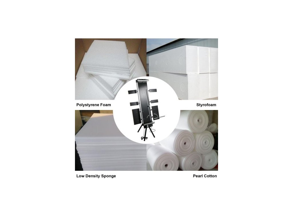 Řezačka polystyrenu Max. tloušťka řezu 42 cm Řezačka pěny Max. 127 cm Řezačka polystyrenu s horkým drátem 0-90°, šest topných drátů se stojanem, boční deska pro řezání pěnové perleťové bavlny