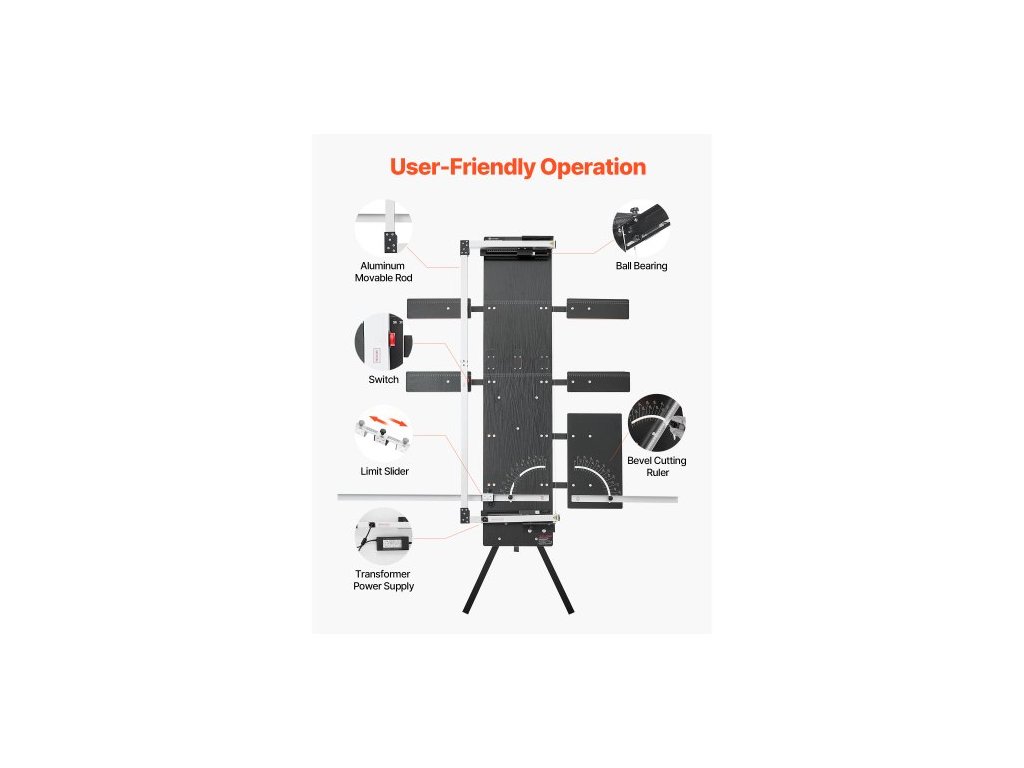 Řezačka polystyrenu s horkým drátem, 200W volně stojící řezačka polystyrenu s 6 ks nikl-chromových topných drátů, profesionální elektrický řezací nástroj s max. délkou řezu 1150 mm pro pěnu, houbu, KT desky