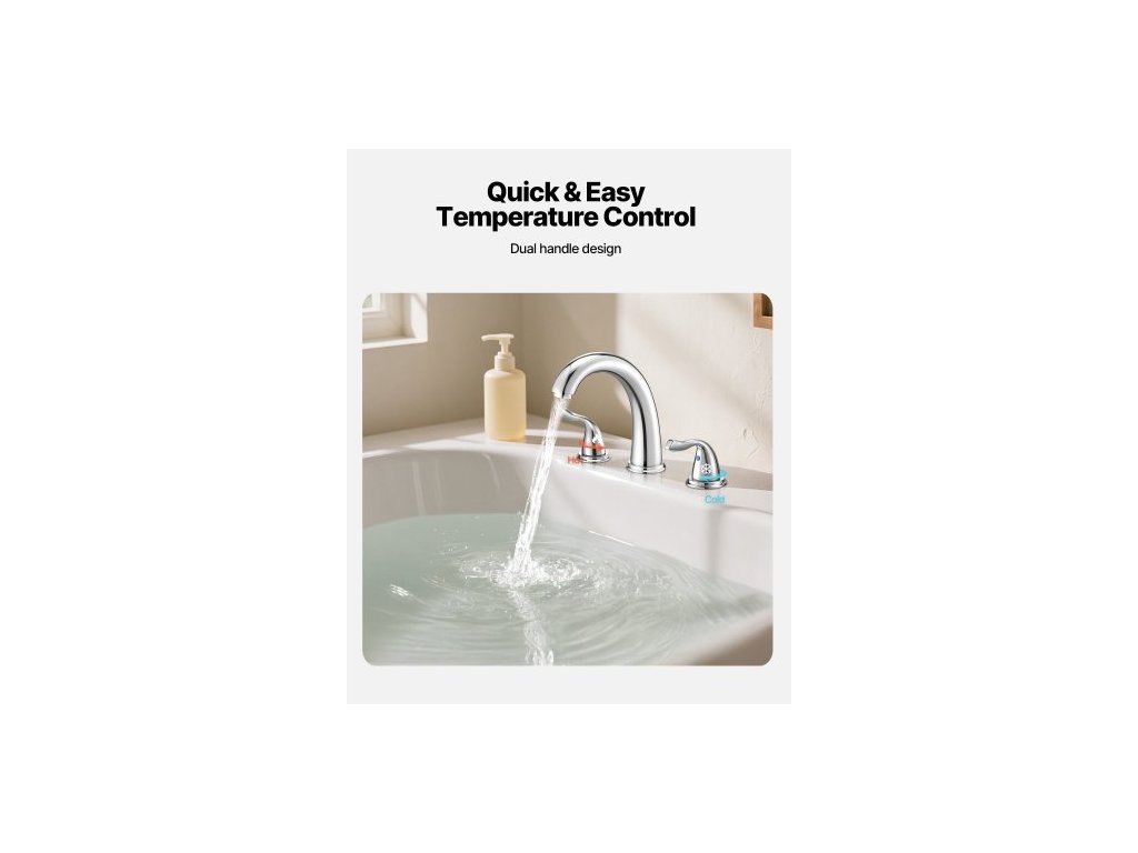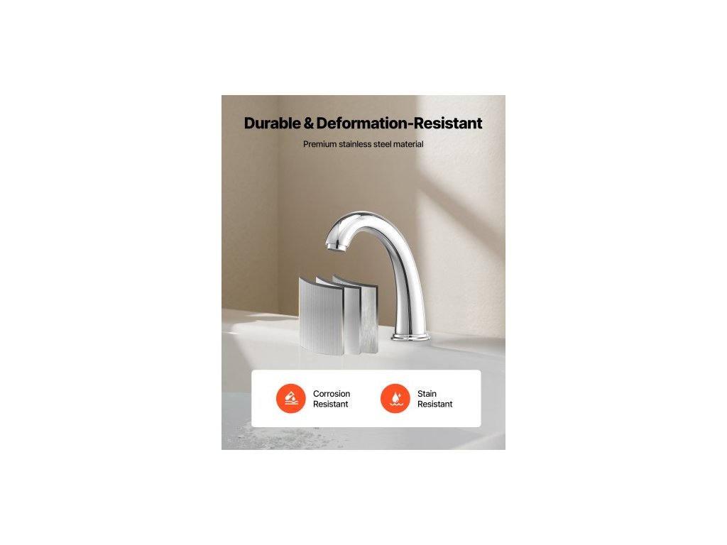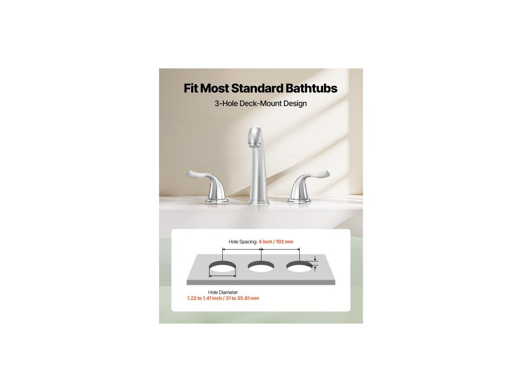 Vanová baterie Roman, 3otvorová vodopádová vanová baterie, sada vanových baterií s husím krkem a 2 rukojeťmi, sada vanových baterií pro koupání dospělých, stříbrná, vysoký výtok, regulace teploty