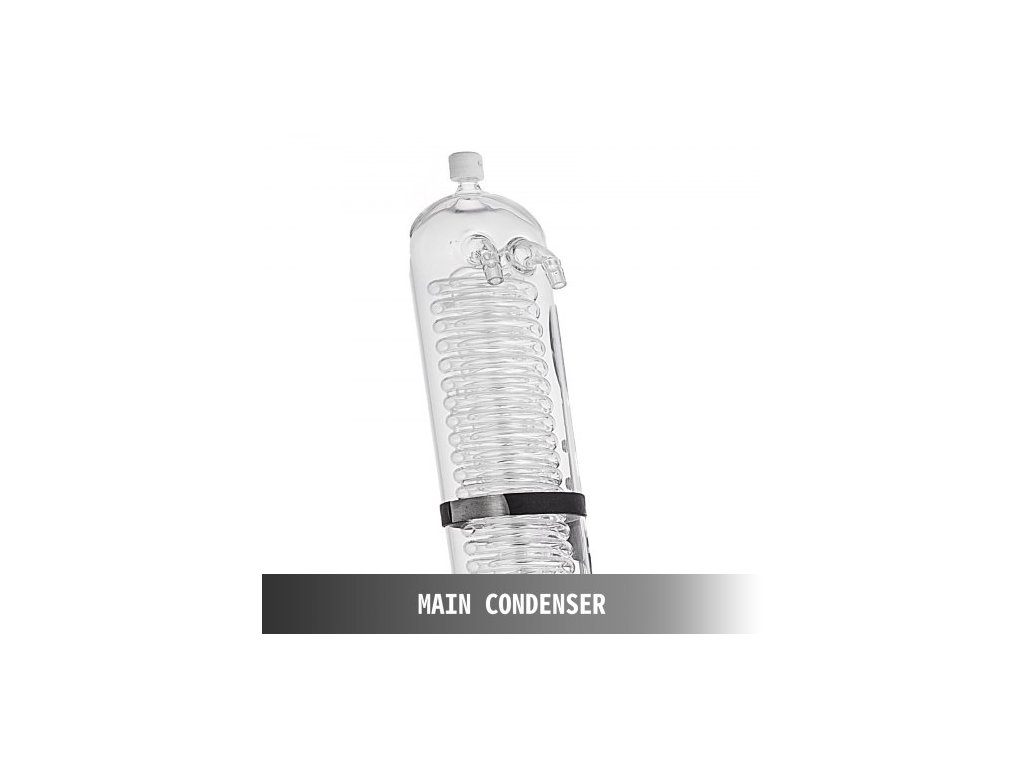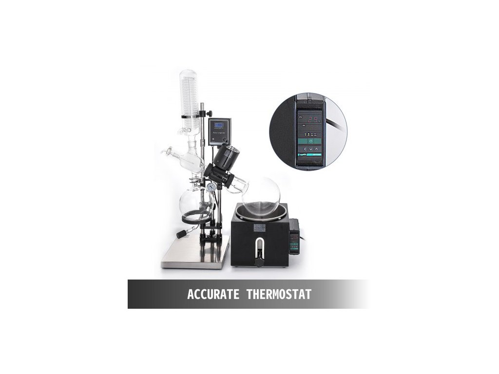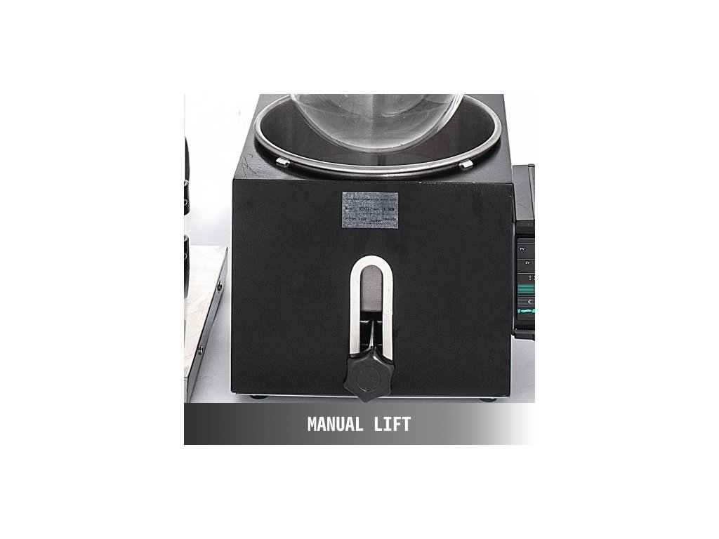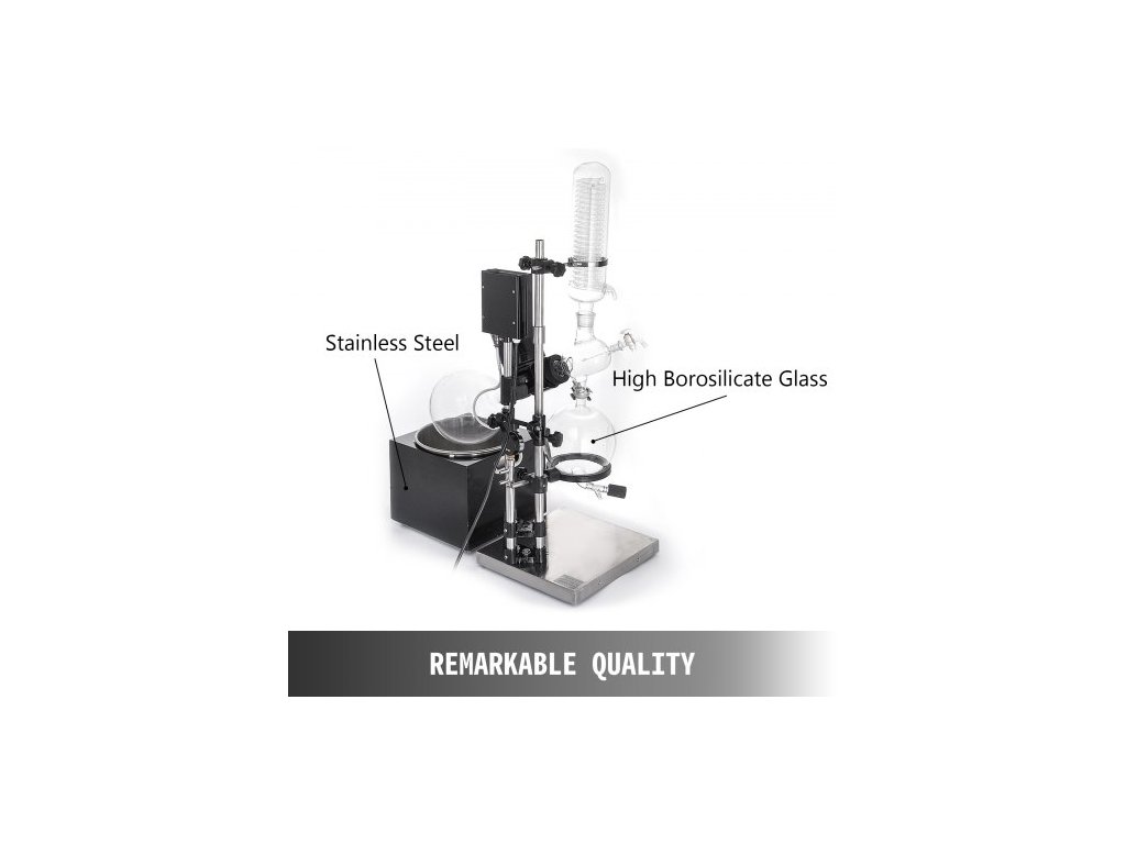 Značka: ,Vstup: 220V,Objem varné baňky: 5L,Baňka a kondenzátor: Borosilikátové sklo,Objem přijímací baňky: 3L,Rozsah zdvihu pánve vodní lázně: 12cm / 4,7",Výkon motoru: 40W,Výkon vodní lázně: 1,5KW,Materiál držáku:Nerezová ocel; hliníková slitina,Otáčky: 0-90 ot./min (plynule nastavitelná)