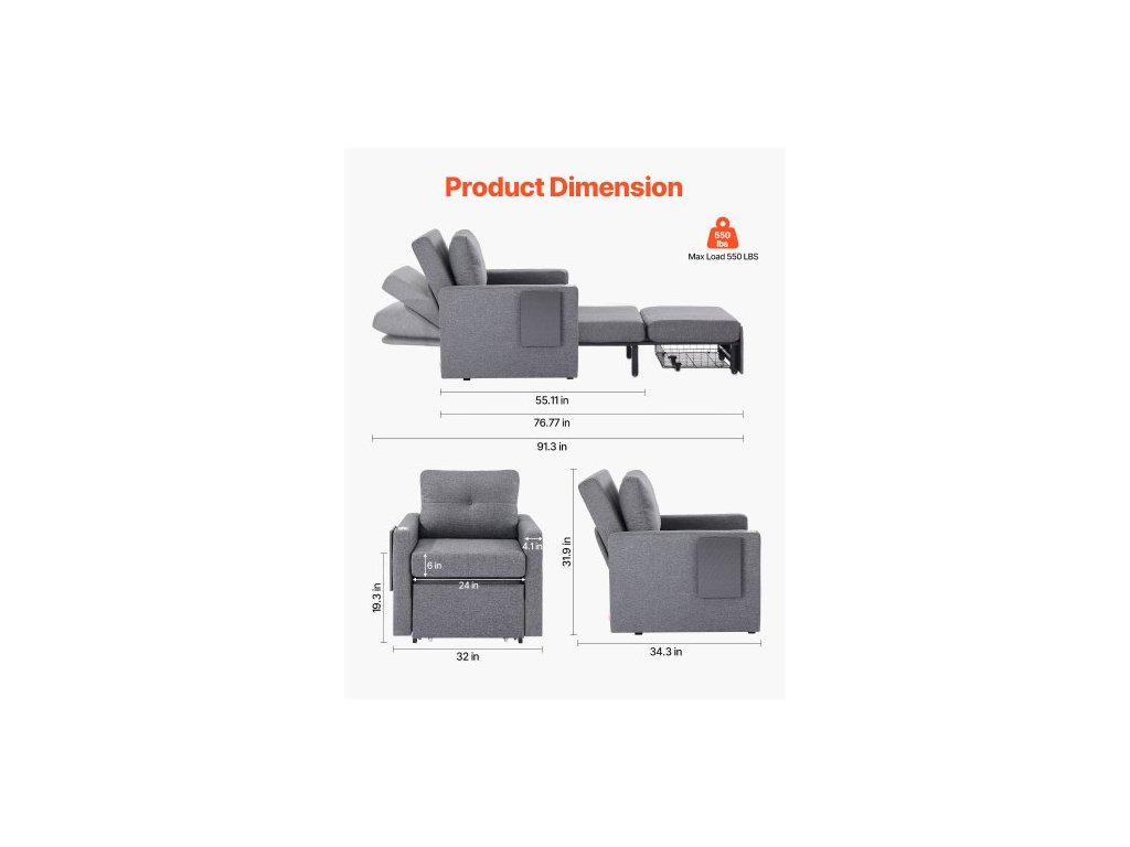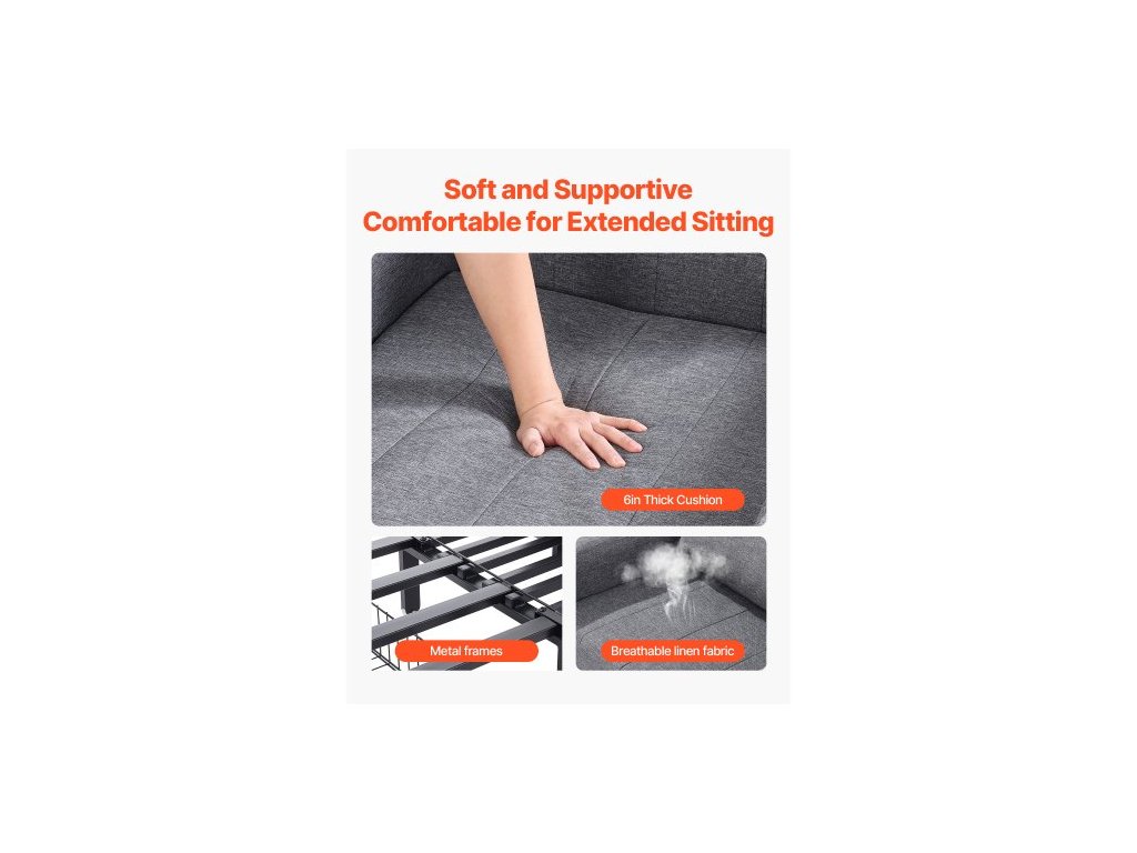 Šířka loketní opěrky: 10,5 cm,Nosnost: 249,5 kg,Tloušťka polštáře pohovky: 15,2 cm,Barva: šedá,Maximální délka v rozloženém stavu: 232 cm,Šířka sedáku pohovky: 61 cm,Rozměry výrobku (pravoúhlý): 87,2 × 81 × 81 cm,Číslo modelu položky: LW-0666-1, Výška sedáku: 49 cm, Materiál: Len; Pěna; Kovový rám; Laminovaná deska, Čistá hmotnost: 32,5 kg, Nastavitelné úhly: 5 nastavitelných poloh; 90°-180°