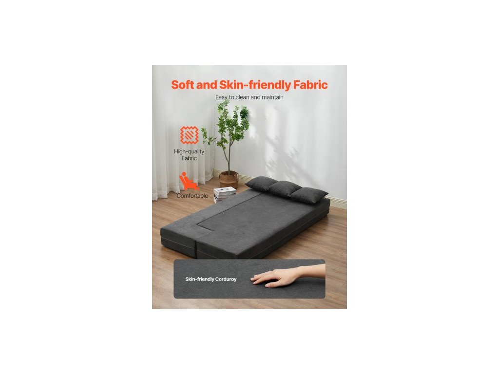 Skládací rozkládací pohovka , skládací gauč 3 v 1 se 3 polštáři a pratelným potahem, rozkládací křeslo z paměťové pěny s vysokou hustotou 25D, futonová pohovka do obývacího pokoje, ložnice, tmavě šedá (jednolůžko)