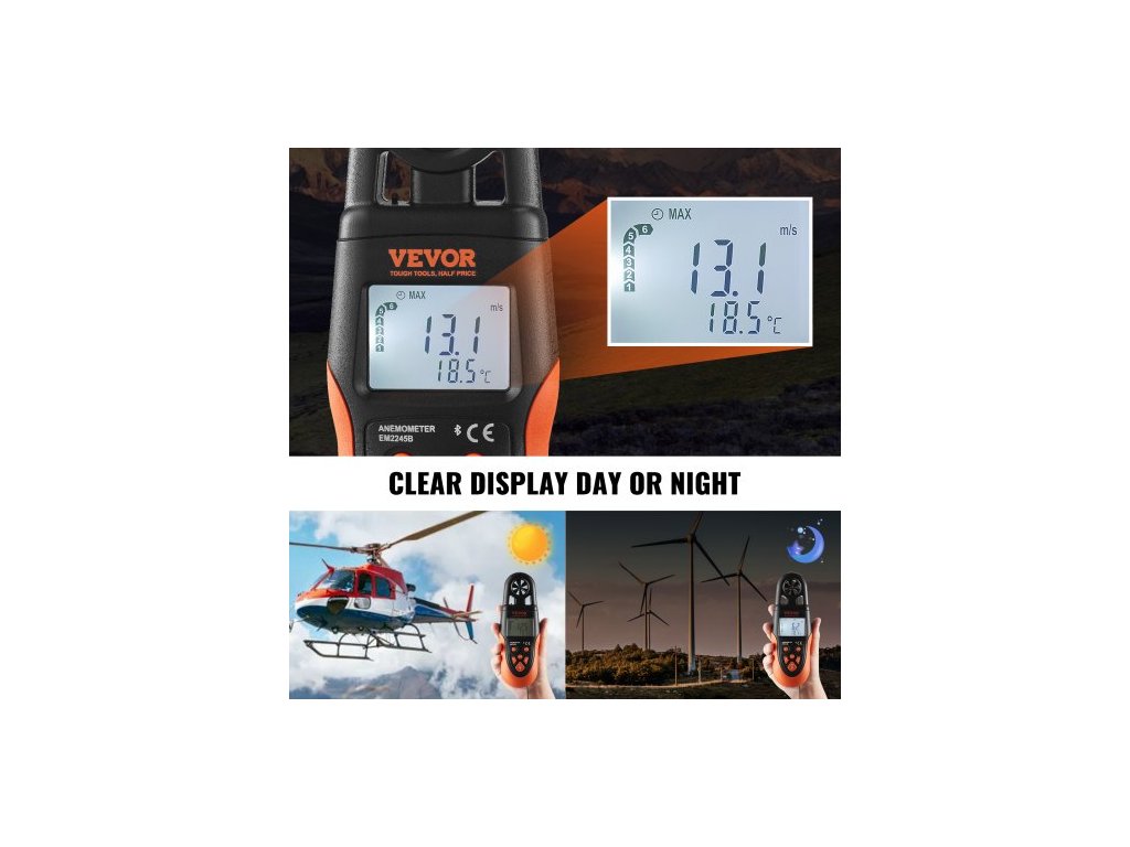Rozsah teploty větru: 14°F až 140°F/-10°C až 60°C,Rozsah rychlosti větru: 0 až 78,4 mph,Rozsah Beaufortův stupnice: 0 až 12,Číslo modelu položky: EM2245B,Jednotka rychlosti větru: 6,Stupeň krytí: IP44 (bez lopatkové jednotky),Rozměry výrobku: 7,5 x 2,6 x 1,7 palce/191 x 67 x 43 mm, Čistá hmotnost: 0,4 lbs / 193 g (včetně baterií), Hlavní materiál: ABS+TPE, PMMA, PC