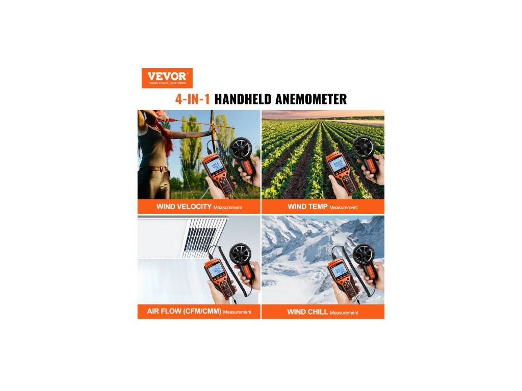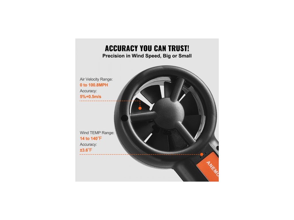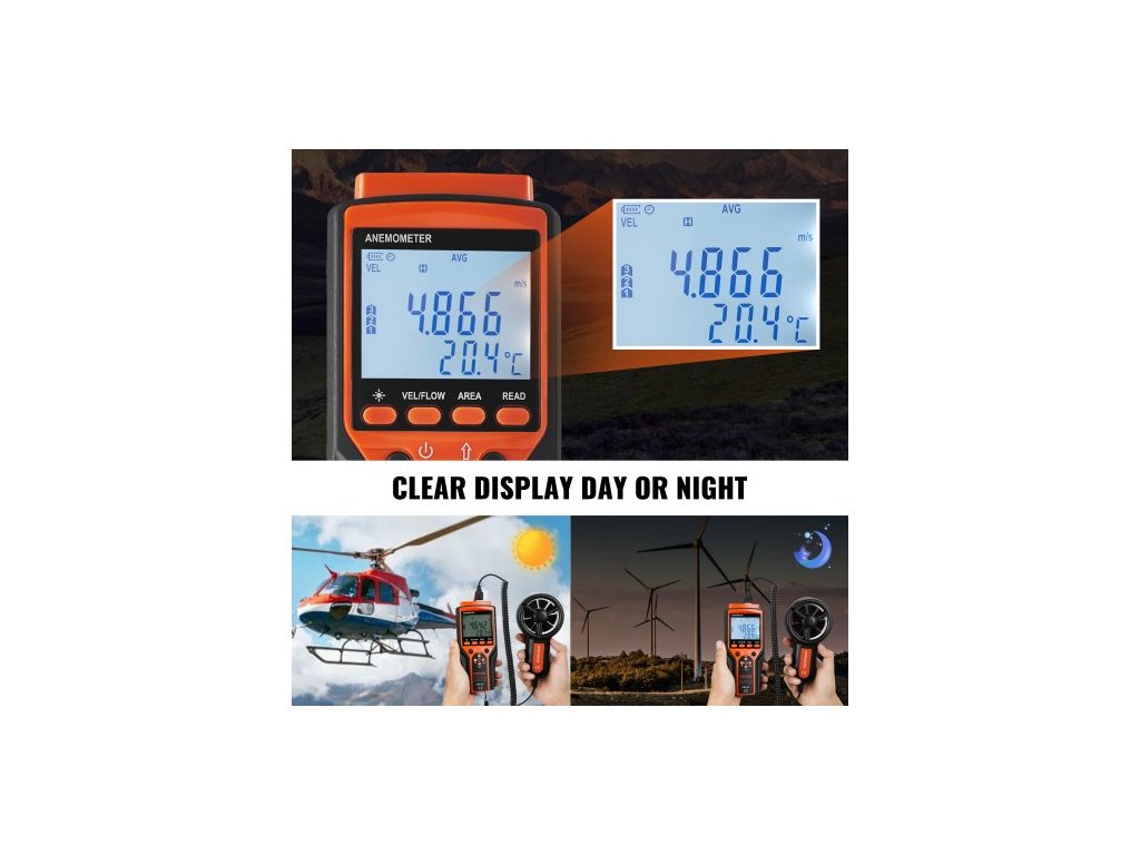 Ruční anemometr Split, 14°F-140°F, digitální měřič rychlosti větru CFM s LED podsvícením, měří rychlost větru, teplotu větru, proudění vzduchu, ochladzování větrem, pro plachtění, surfování, létání, vytápění, větrání