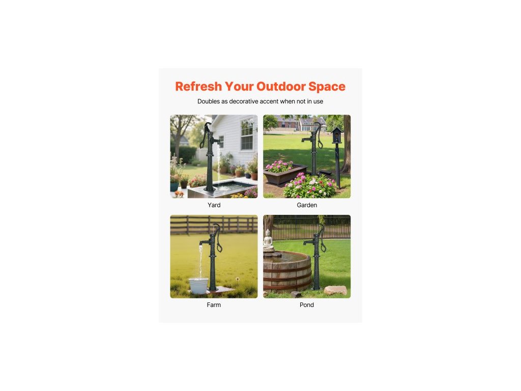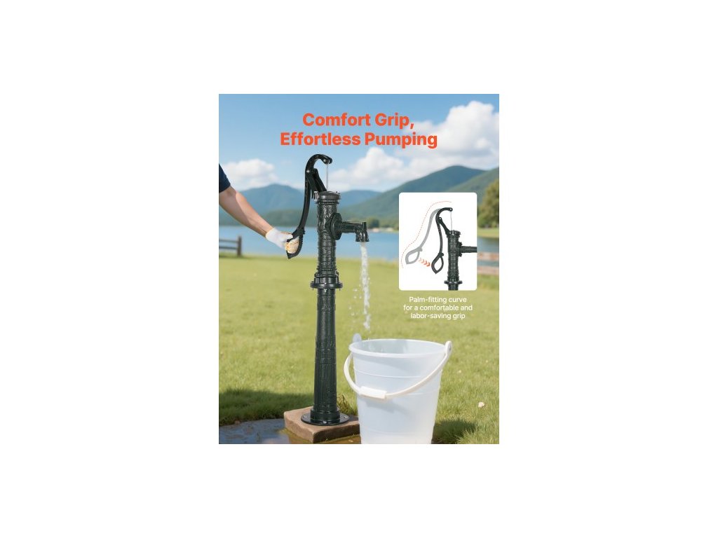 Ruční džbánové čerpadlo , maximální zdvih 6 m, ruční litinové čerpadlo ze starožitné litiny se zvýšenou základnou, připojení NPT 1-1/4 palce, snadná instalace, pro venkovní zahradu, rybník, dvůr, farmu, zeleň