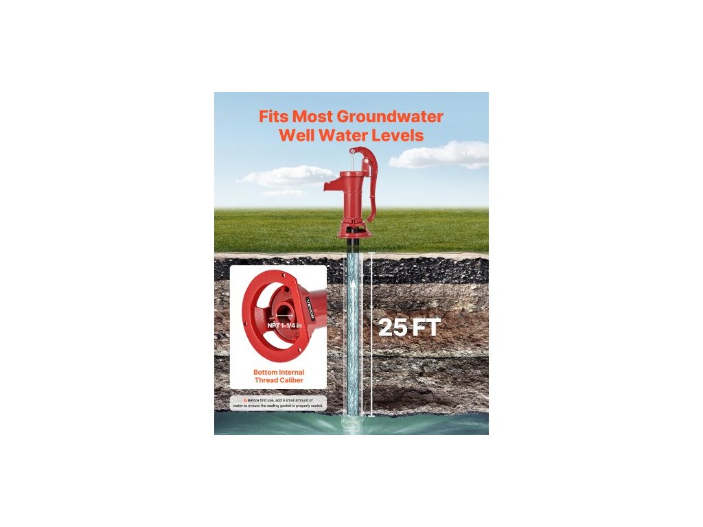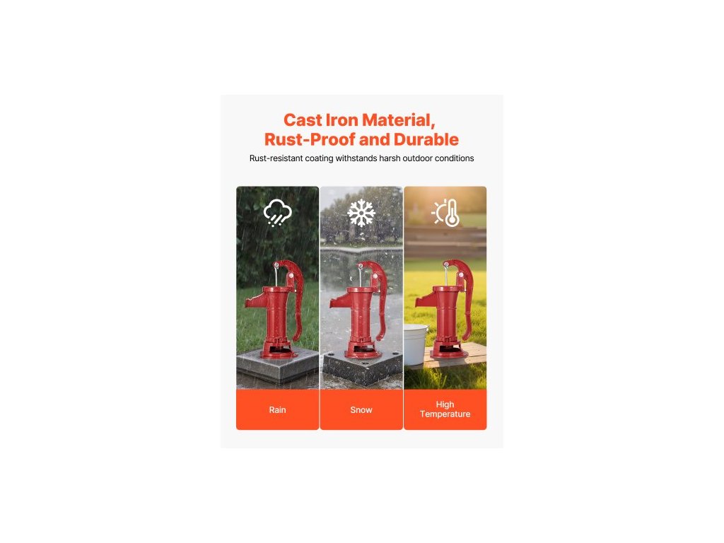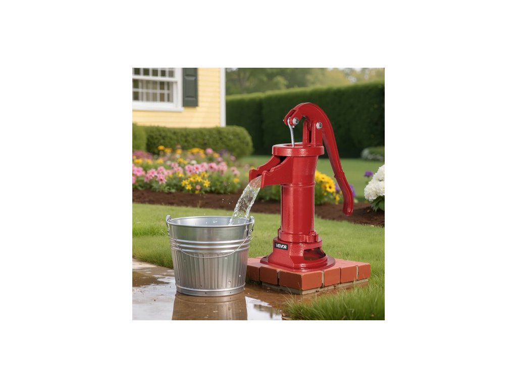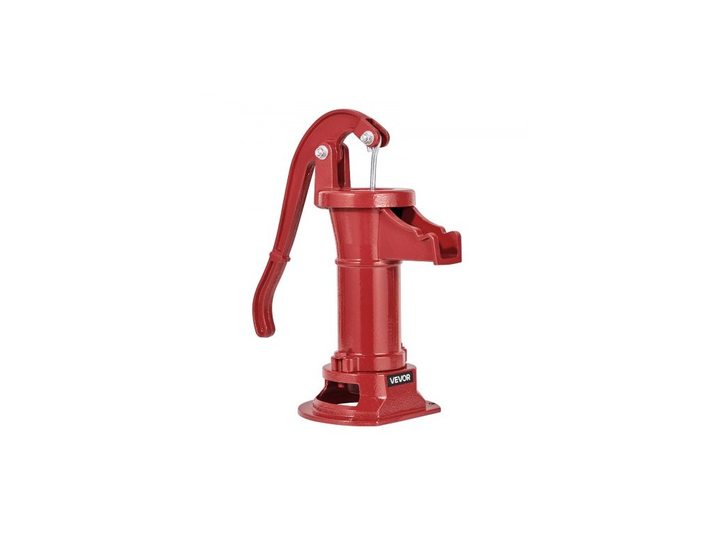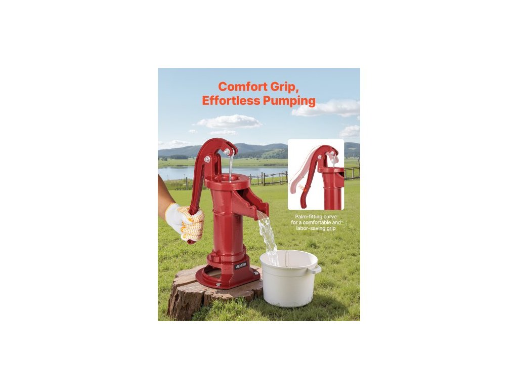 Ruční džbánové čerpadlo , maximální zdvih 7,6 m, starožitné litinové ruční vodní čerpadlo, připojení NPT 3,75 cm, snadná instalace, staromódní pro venkovní zahradu, rybník, dvorek, farmu, červené