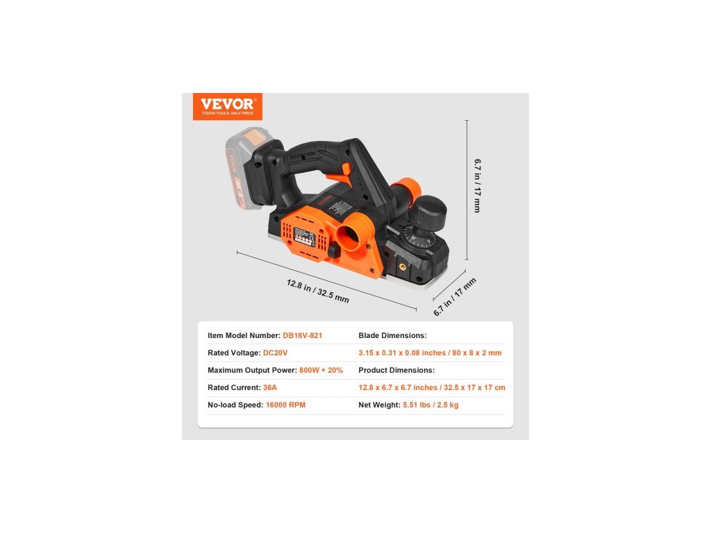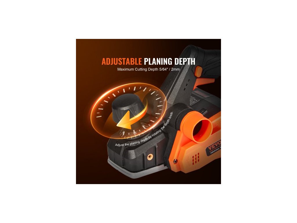 Ruční hoblík s akumulátorovým elektrickým hoblíkem, šířka 3-1/4", 16500 ot./min., nastavitelná hloubka hoblování 5/64", HSS nože, oboustranný výstup prachu, pro opracování dřeva, hoblování a vyhlazování povrchů