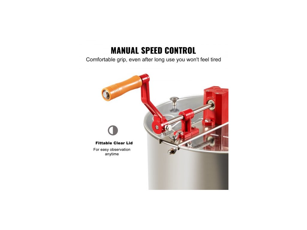 Ruční medomet , 3rámkový medomet, nerezová včelařská extrakce, voštinový buben s víkem, včelí odstředivka s výškově nastavitelným stojanem