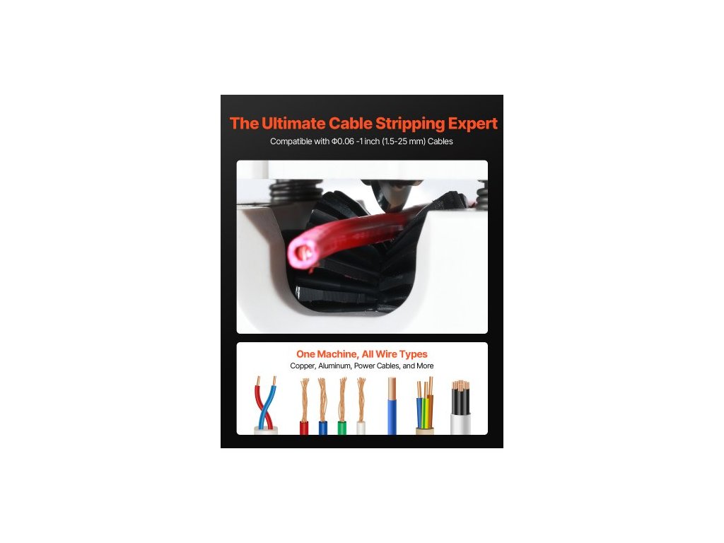Ruční odizolovací kleště , odizolovací stroj 1,5–25 mm (0,06–1 palce), ruční nebo vrtací