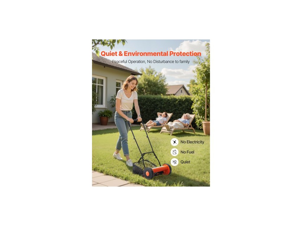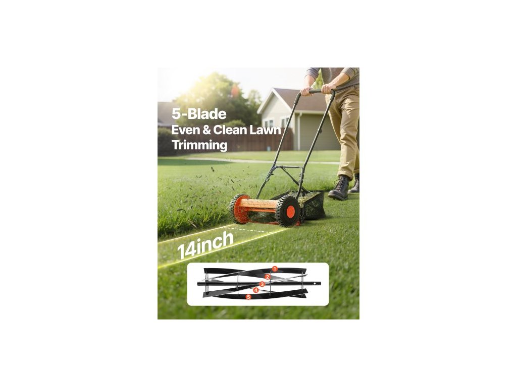Ruční vřetenová sekačka 35 cm, 5 nožů, bez motoru, nastavitelná výška sečení 15-45 mm, sekačky s víkem na trávu pro zelené trávníky, příjezdové cesty a dvory