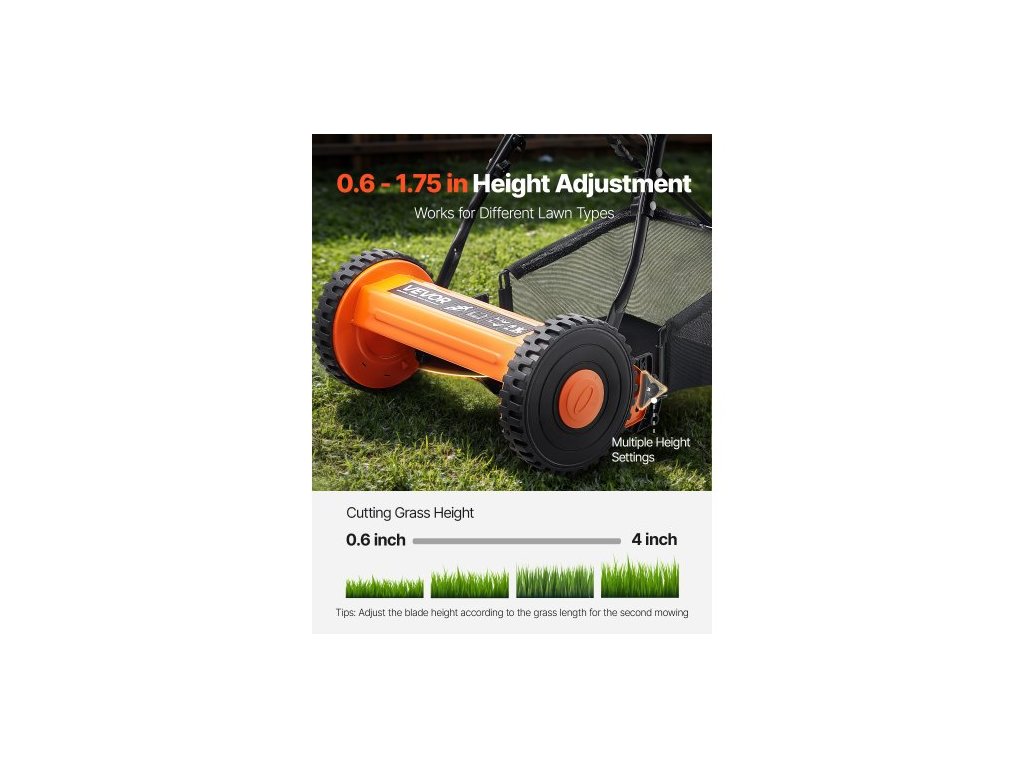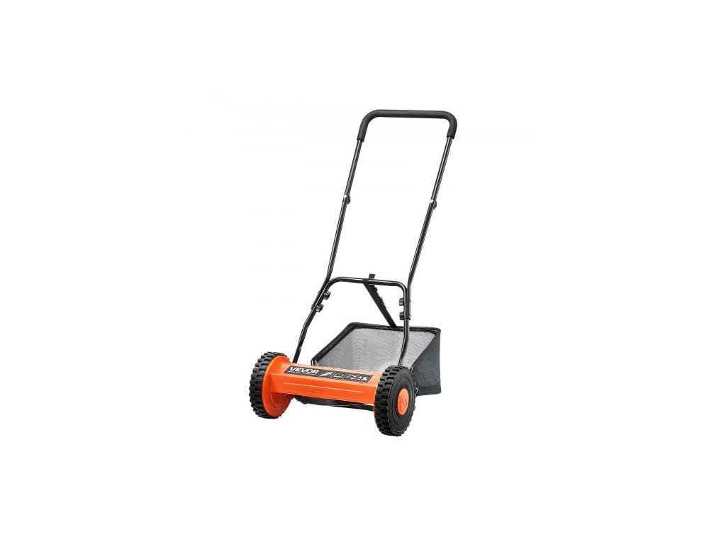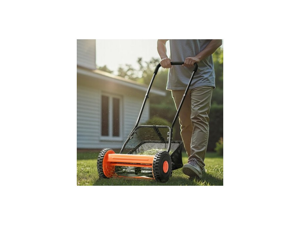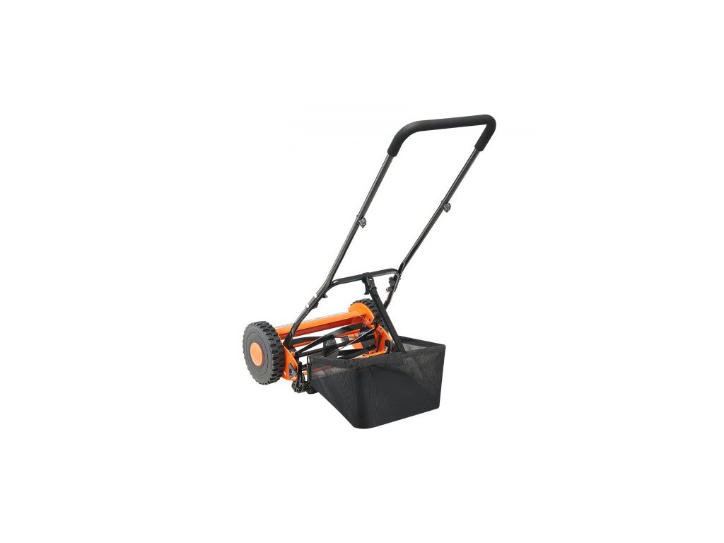 Ruční vřetenová sekačka na trávu 35 cm, 5 nožů Ruční sekačka bez motoru, nastavitelná výška sečení 15-45 mm, sekačky s pojezdem a sběrným košem pro zelené trávníky, příjezdové cesty a dvory
