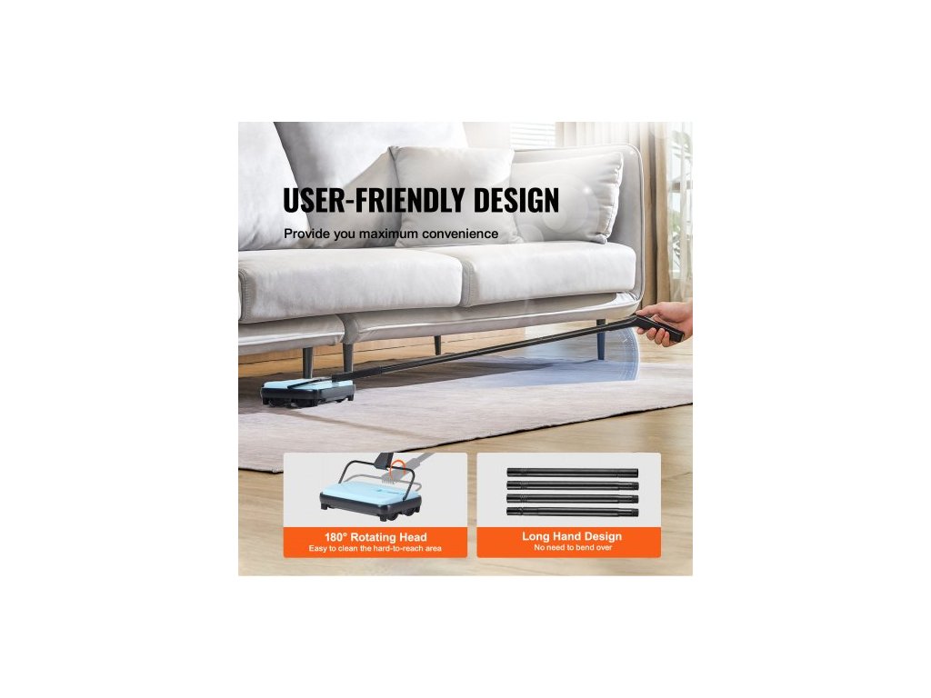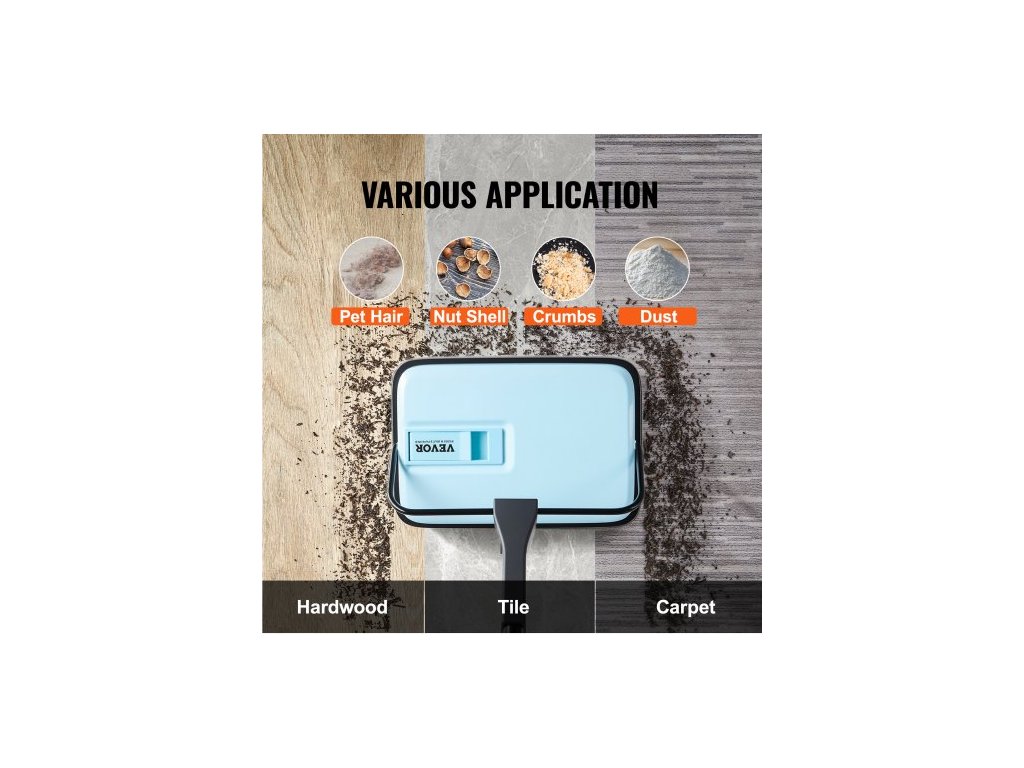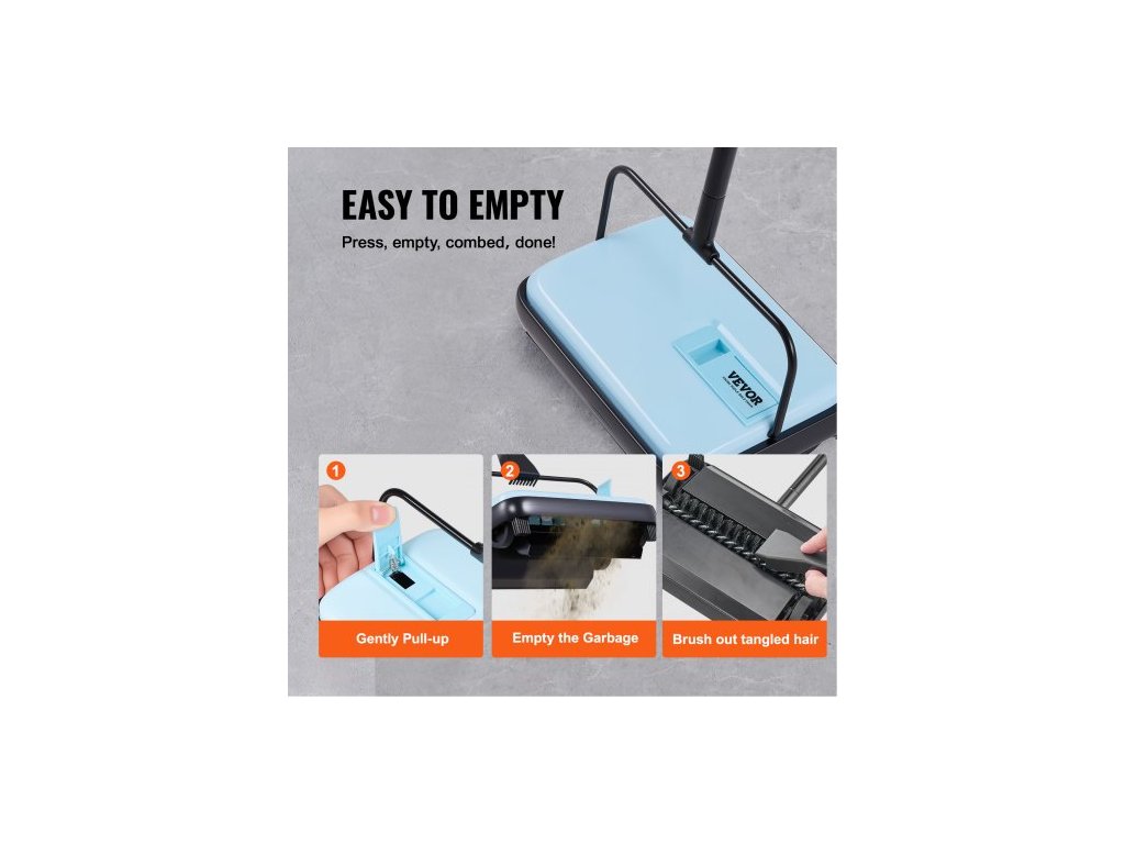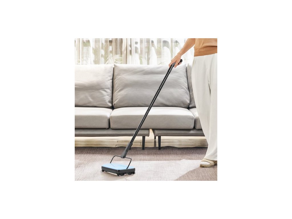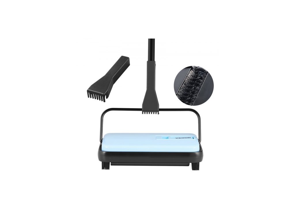 Ruční zametací stroj na koberce, podlahový zametací stroj s objemem 300 ml, snadno se vyprazdňuje, šířka čištění 17 cm pro domácí kancelářské koberce, prach a zvířecí chlupy, modrý