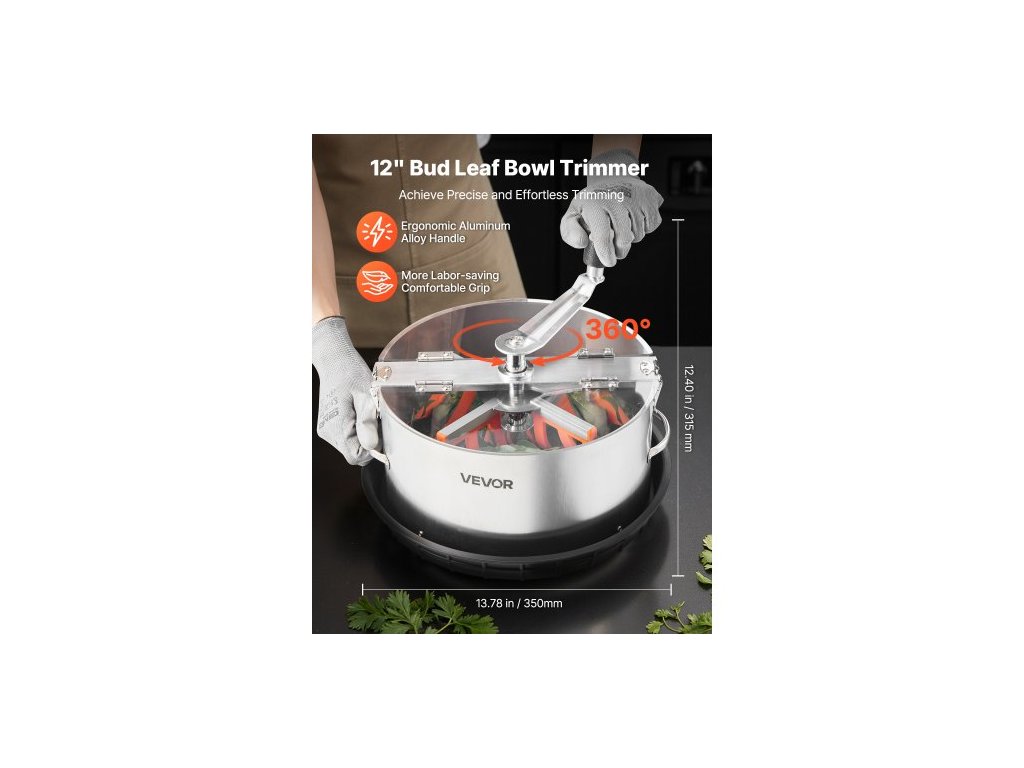 Ruční zastřihovač listů , 300mm miska na zastřihovač pupenů s čepelemi z nerezové oceli, vizuální řezání, hydroponický řezací stroj pro mokré i suché pěstování s miskou, kroucené rotační řezání pro pupeny a květy rostlin