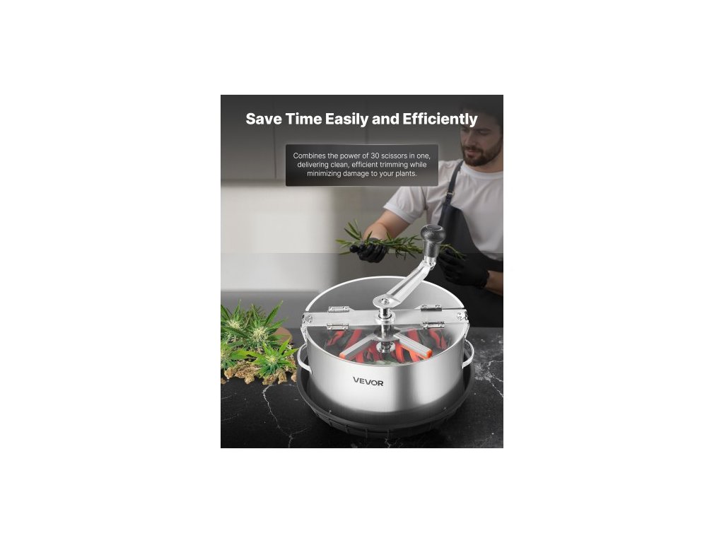 Ruční zastřihovač listů , miska na zastřihovač pupenů 300 mm s nerezovými čepelemi, vizuální řezání, hydroponický řezací stroj pro mokré i suché pěstování s miskou, kroucené rotační řezání pro pupeny a květy