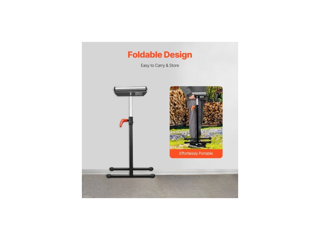 Sada 2 válečkových stojanů , nosnost 66 kg, nastavitelná výška 72,5–107,5 cm, skládací odolná konstrukce s leštěnou ocelovou válečkovou hlavou o průměru 29,5 cm, pro prodloužení podpěry pro stolní pilu, obrábění dřeva