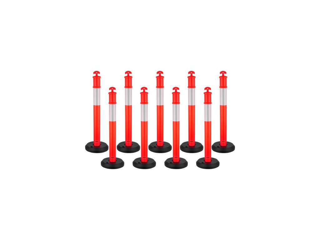9dílné balení dopravních směrových sloupků, 1140mm bezpečnostní kužely s plnitelnou základnou a reflexními proužky, odolné směrové sloupky pro staveniště, parkoviště a regulaci davu, červená