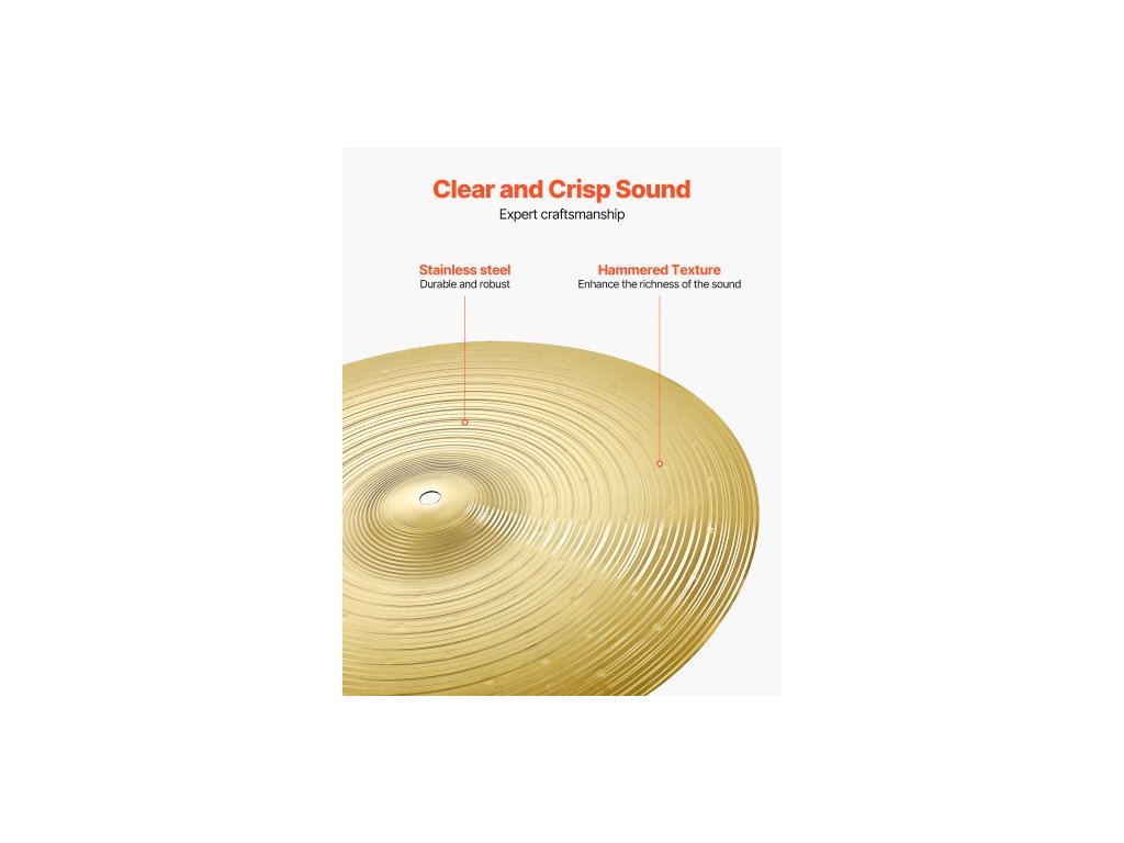 Sada činelů , 3 kusy, sada činelů pro bicí, 355/400/505 mm (14 16 20 palců), činely pro bicí, kompletní sada činelů, 3 zvukové efekty, pohodlné hraní, všestranné použití, ideální dárek, včetně paliček, tloušťka: 0,04 palce / 1 mm, rozměry hi-hatů: ? 14 x 1,18 palce / 355 x 30 mm, barva: lesklá měď, číslo modelu: 3E3G, rozměry crash: ? 16 x 1,18 palce / 400 x 30 mm, rozměry ride: ? 20 x 1,38 palce / 505 x 35 mm, vzhled: drážky a otisky kladívků, hmotnost netto: 9,7 lbs / 4,4 kg, Hlavní materiál: Nerezová ocel 201