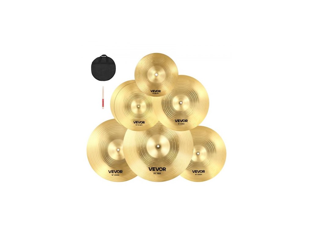 Sada činelů , 6 kusů, 254/355/400/455/505 mm (10, 14, 16, 18, 20 palců), činely pro bicí