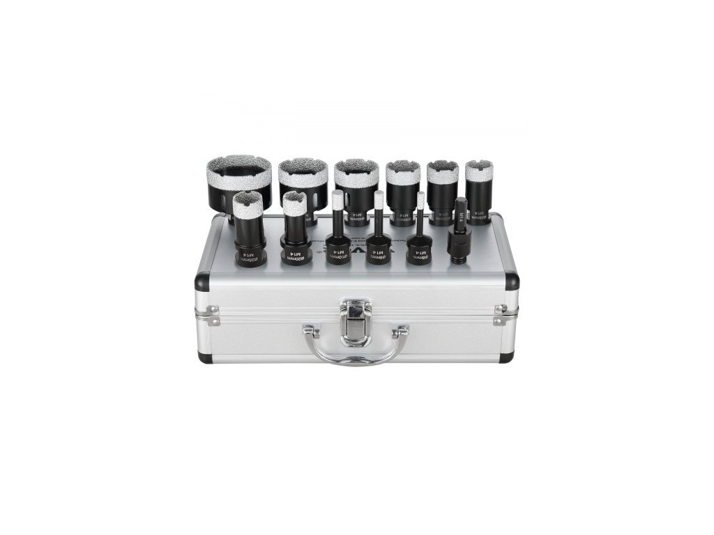 Kompatibilní stroj: elektrické vrtačky, úhlové brusky, sada nářadí z hliníkové fólie (DxŠxV): 11,8 x 7,5 x 3,9 palce / 300 x 190 x 100 mm, Čistá hmotnost (včetně příslušenství): 4,4 lbs / 1,97 kg, Číslo modelu položky: SSTZ-007, Množství: 11 kusů, Maximální hloubka vrtání: 1,6 palce / 40 mm, Materiál: Diamant + ocel 45#, Specifikace konektoru: M14, Průměr: 0,2 palce/6 mm, 0,3 palce/8 mm, 0,4 palce/10 mm, 0,8 palce/20 mm, 1 palec/25 mm, 1,1 palce/28 mm, 1,3 palce/32 mm, 1,4 palce/35 mm, 1,8 palce/45 mm, 2 palce/50 mm, 2,6 palce/65 mm