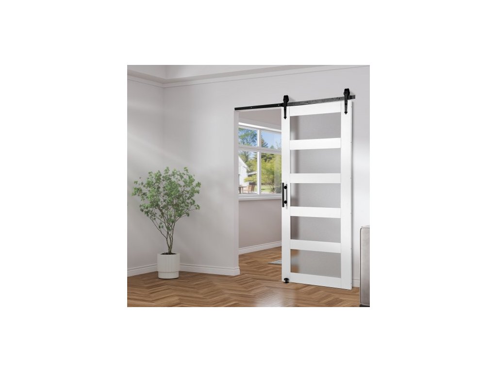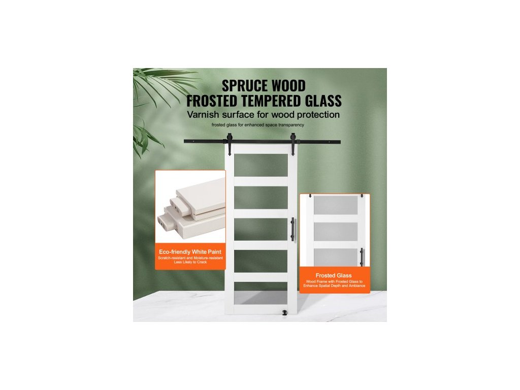 Sada dveří a kování pro stodolu, posuvné dveře do stodoly ze dřeva a skla o rozměrech 36" x 84", hladce a tiše se otevírají, sada dveří do stodoly s podlahovým vedením a klikou 8 v 1, smrková dřevěná deska a matné sklo