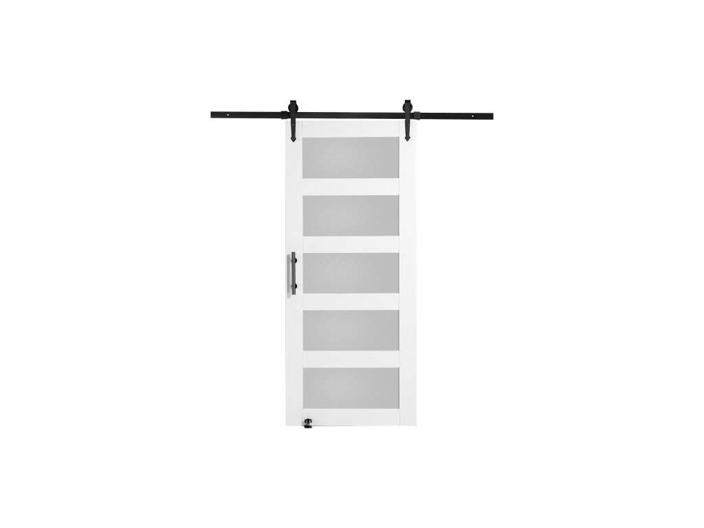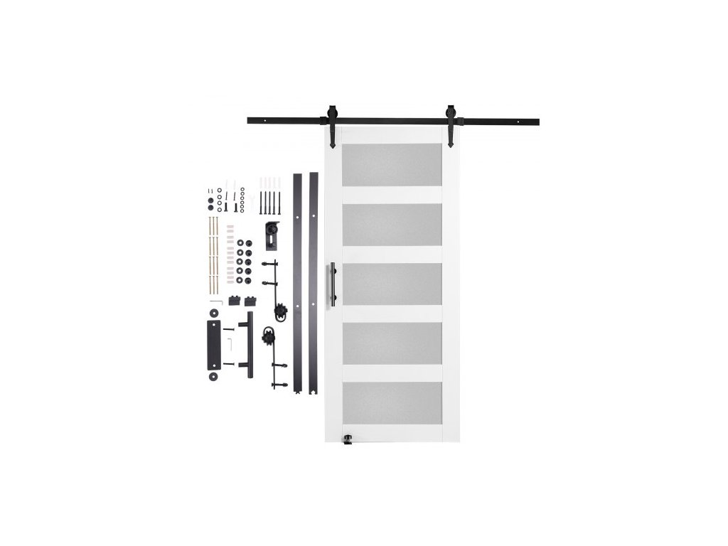 Sada dveří a kování pro stodolu, posuvné dřevěné a skleněné dveře do stodoly 36" x 84", hladce a tiše, sada dveří do stodoly s podlahovým vedením a klikou 8 v 1, smrková dřevěná deska a matné sklo
