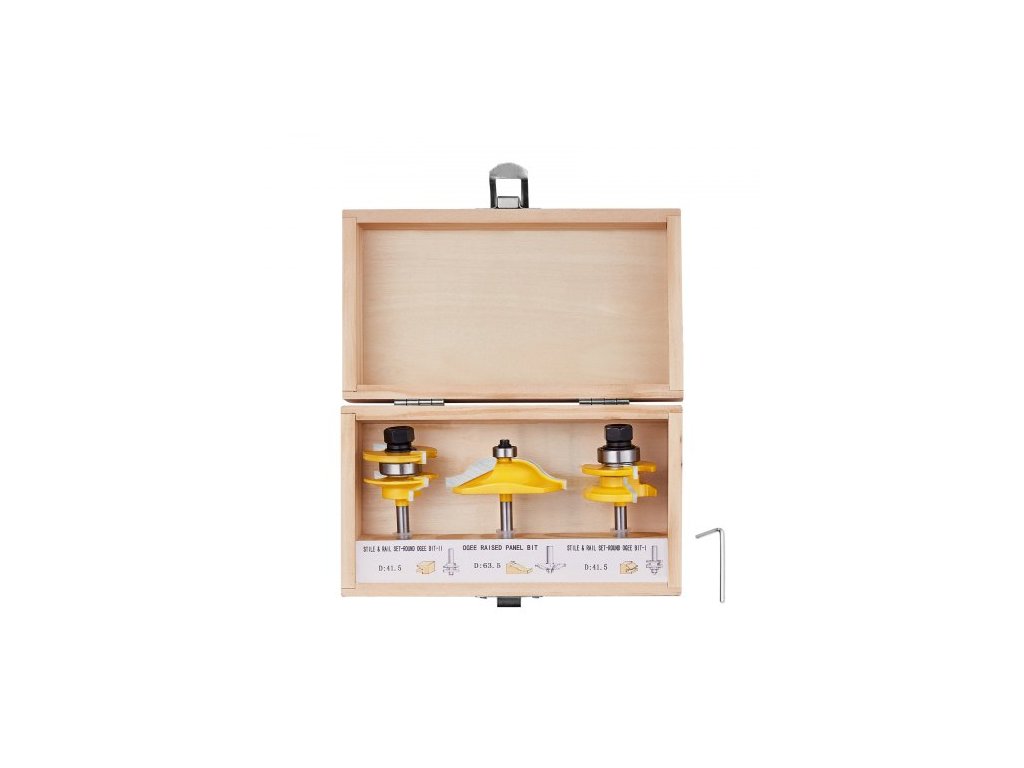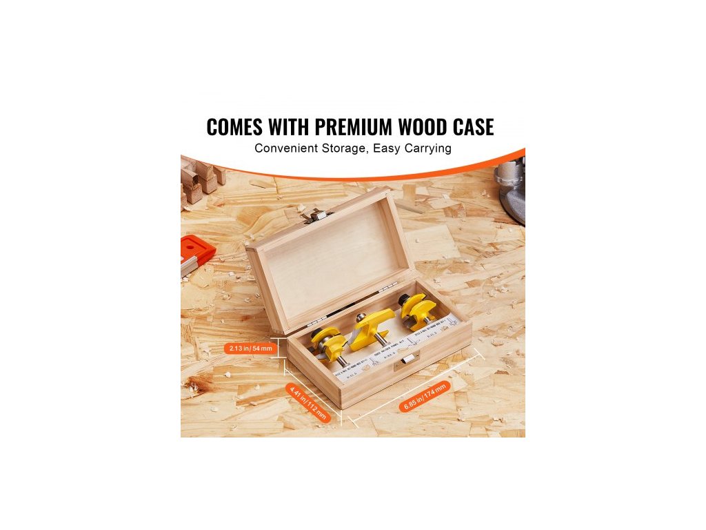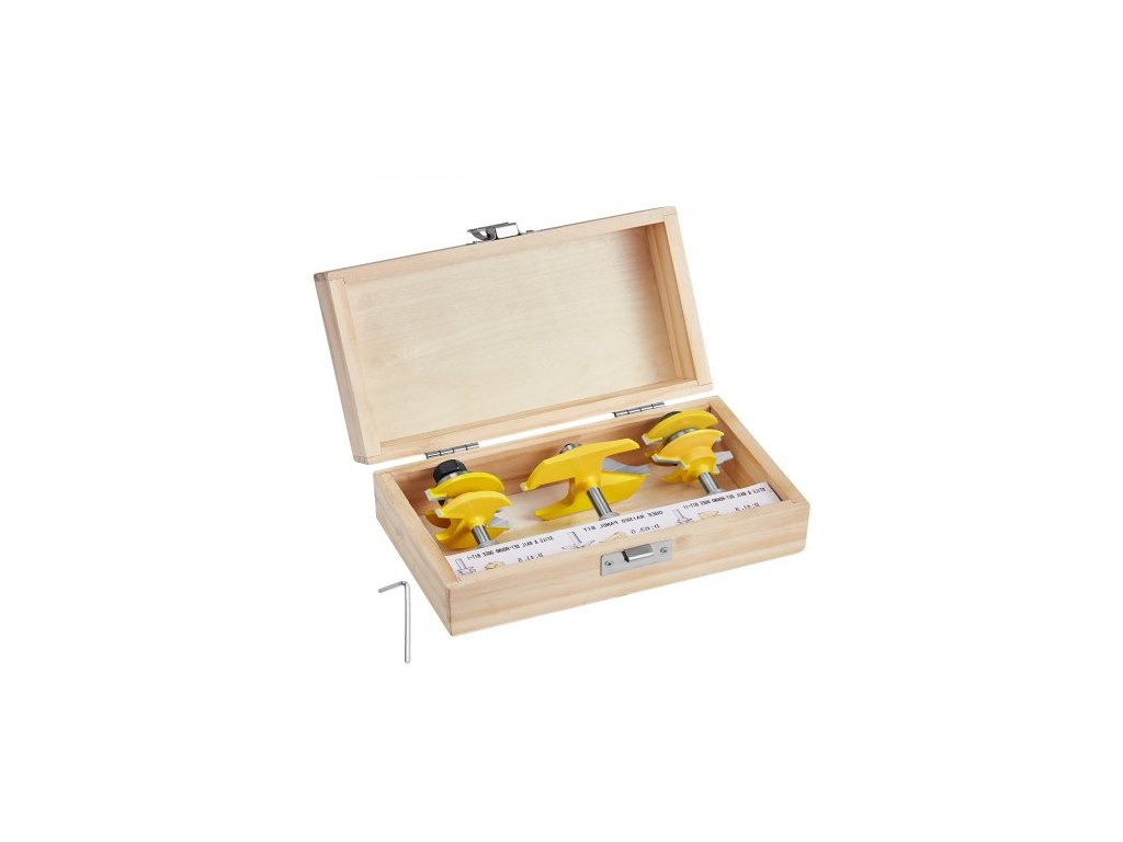 Sada fréz , 3 kusy, sada karbidových fréz se stopkou 6,35 mm (1/4 palce), dřevěné přepravní pouzdro, nářadí pro profesionální i začínající tesaře, pro dřevo, MDF, dřevotřísku, překližku