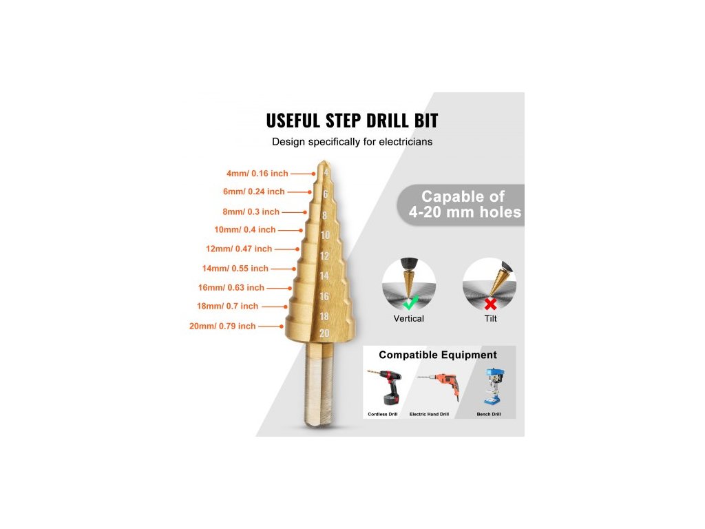 Sada obsahuje 10 ocelových vrtáků, včetně 1/2", 3/4", 1, 1-1/4", 1-1/2", 2", 2-1/2", 3", 3-1/2" a 4" pro vrtání otvorů s velkým i malým průměrem.