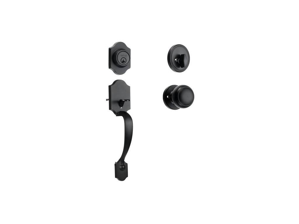 Sada kliky a závory pro vchodové dveře , matně černá sada zámků pro vchodové dveře s vnitřní knoflíkem, nastavitelná rozteč otvorů, klika s jednou cylindrickou vložkou, pro praváky i leváky vchodové a hlavní dveře