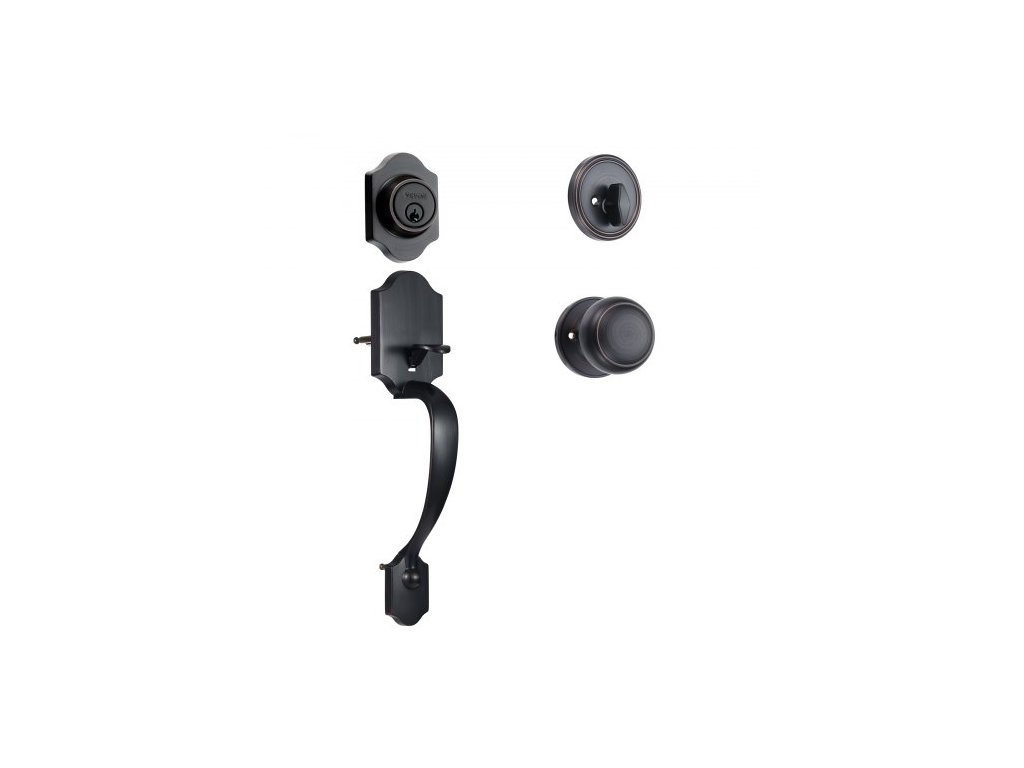 Sada kliky a závory pro vchodové dveře , Sada zámku pro vchodové dveře s vnitřní klikou, nastavitelná rozteč otvorů, klika s jednou cylindrickou vložkou, pro praváky i leváky, kartáčovaný bronz s olejovým nátěrem
