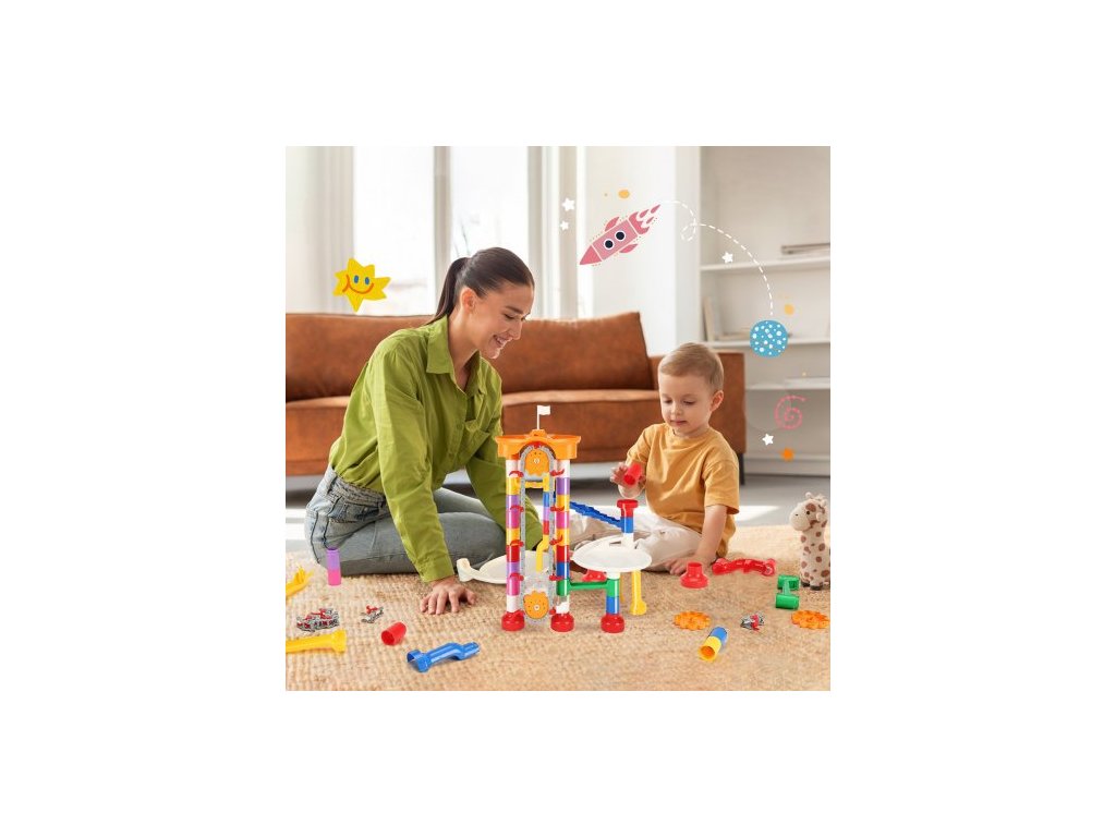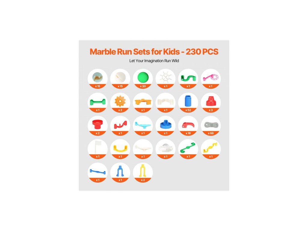 Sada kuliček na běhání, 230 dílů s motorizovaným výtahem, s 15 plastovými kuličkami, mramorové bludiště, hra na mysl, vzdělávací a vzdělávací závodní dráha, STEM hračky, pro děti, chlapce, dívky od 3 let