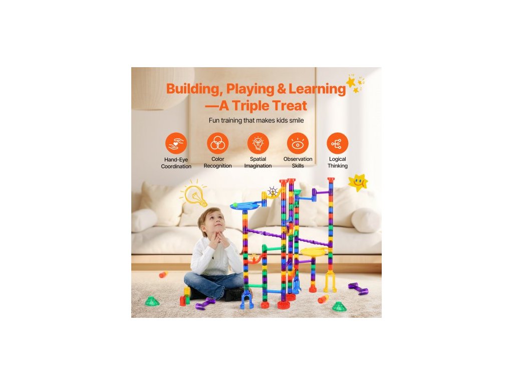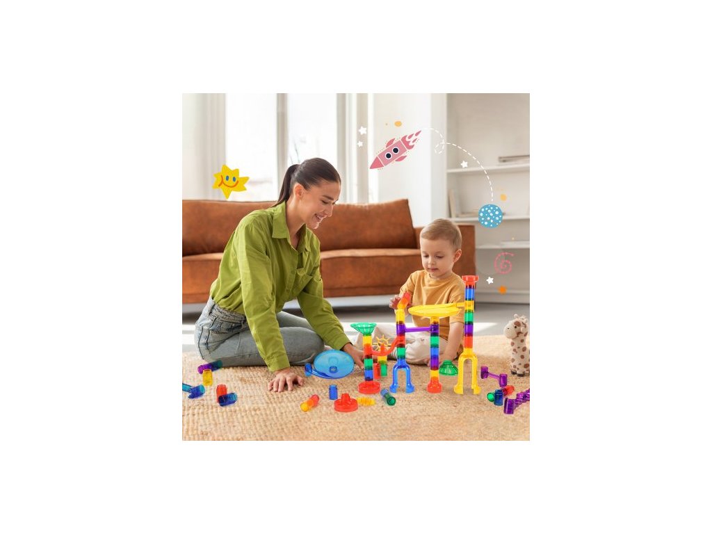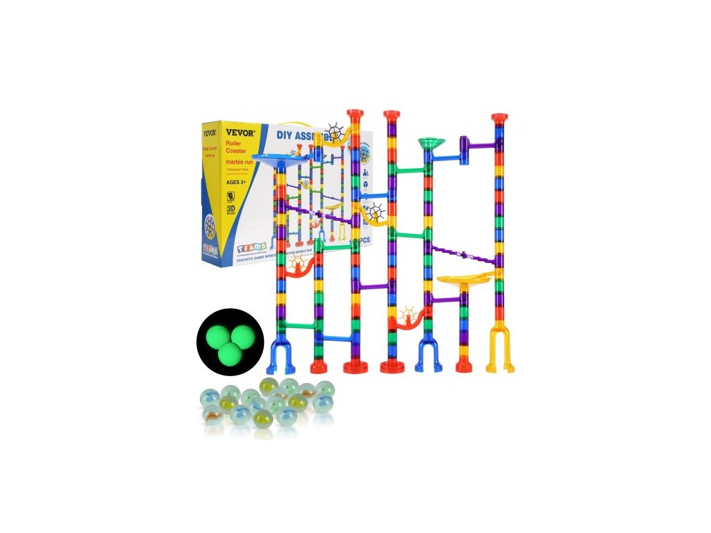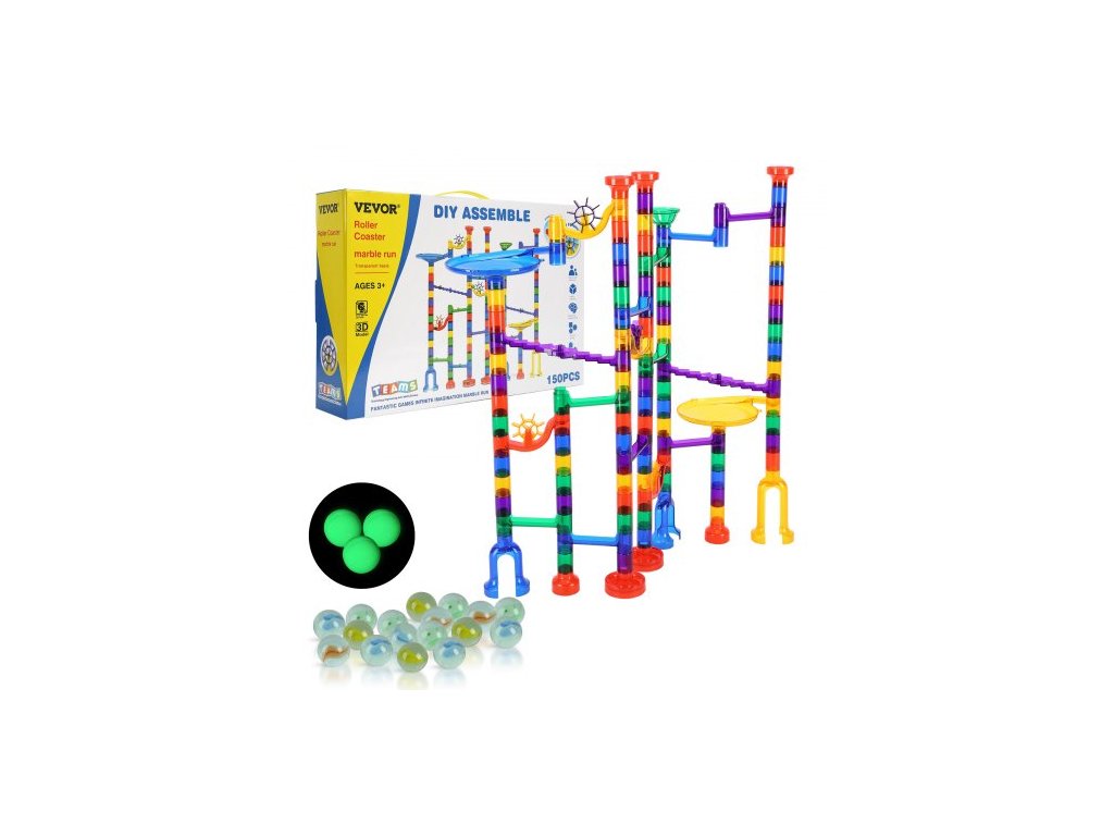 Sada mramorových běhů, 150dílná mramorová bludiště - stavebnice pro mysl, s 10 kuličkami svítícími ve tmě + 40 skleněnými kuličkami, vzdělávací a vzdělávací hračky STEM pro děti, chlapce a dívky od 3 let