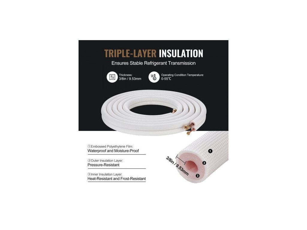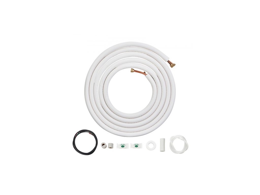Sada mini děleného potrubí 25FT, měděné trubky s vnějším průměrem 6,4 a 12,7 mm a trojvrstvá izolace, pro klimatizaci nebo topná čerpadla a HVAC s bohatým příslušenstvím (připojovací kabel 27ft)