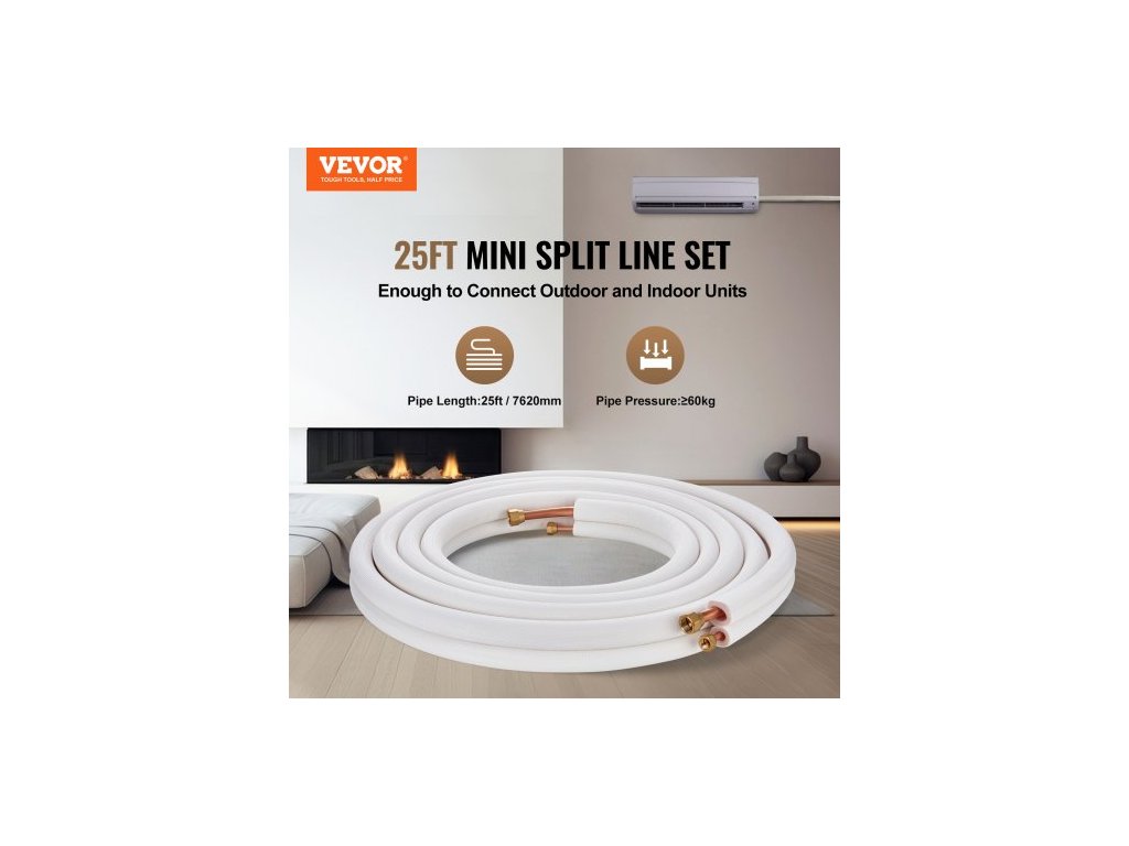 Sada mini děleného potrubí 7620 mm, měděné trubky s vnějším průměrem 6,4 a 9,5 mm a trojvrstvá izolace, pro mini dělené klimatizační systémy, chladicí nebo topná čerpadla a HVAC s ovíjecími páskami.