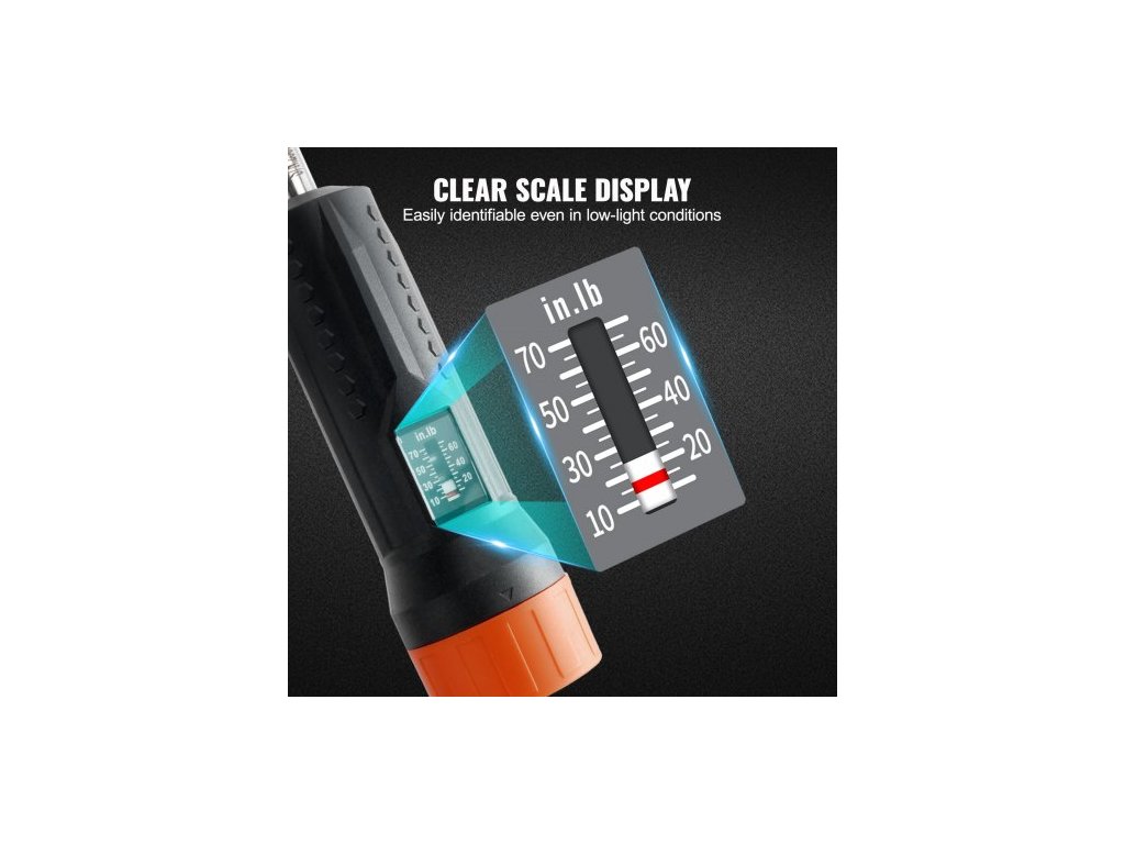 Sada momentových klíčů 1/4" Drive | Rozsah nastavení momentu 10-70 in-lbs | Momentový šroubovák s krokem 1 in-lb | Sada bitů s průzorem, 12 bitů a pouzdrem, magnetická funkce
