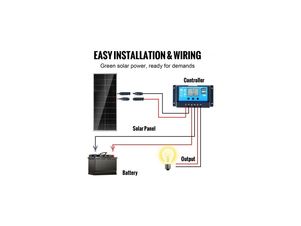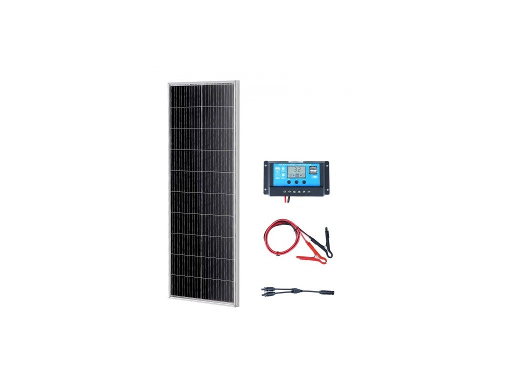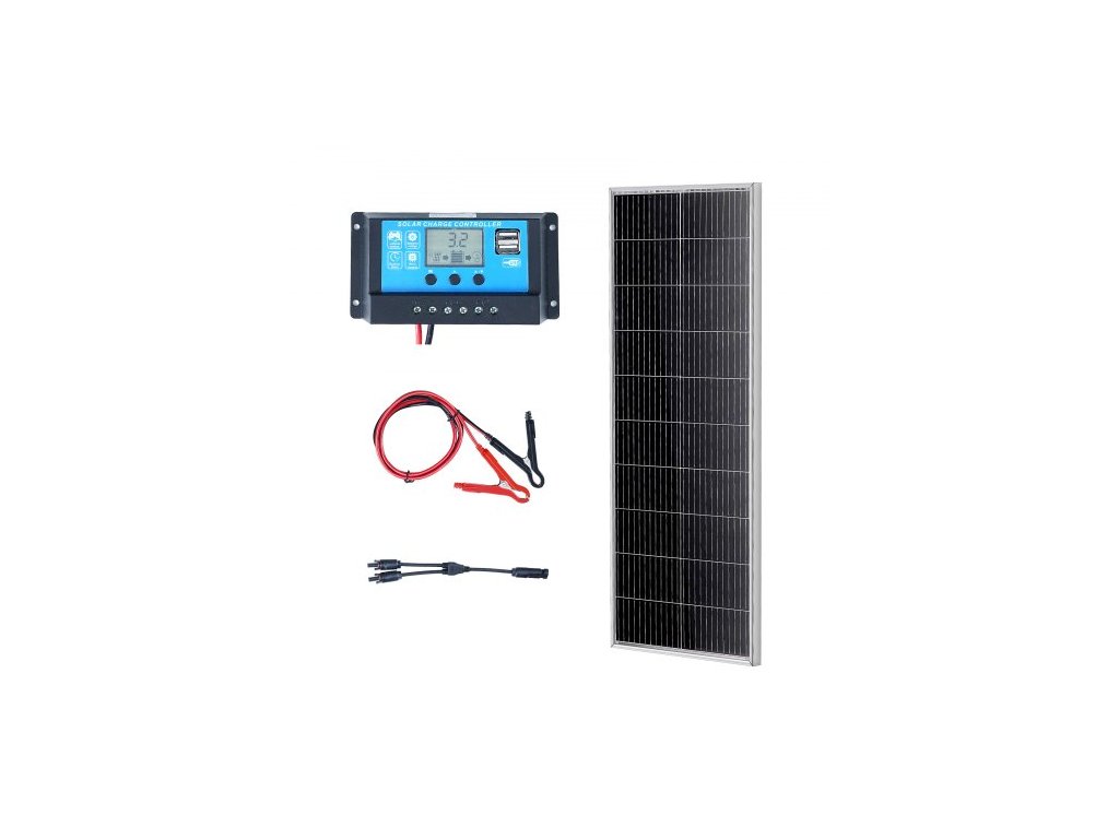 Sada monokrystalického solárního panelu 100W, 12V monokrystalický solární panel + regulátor nabíjení, 23% vysoce účinný monokrystalický fotovoltaický modul, vodotěsný s krytím IP68 pro obytné vozy, lodě, kempování, offline systémy
