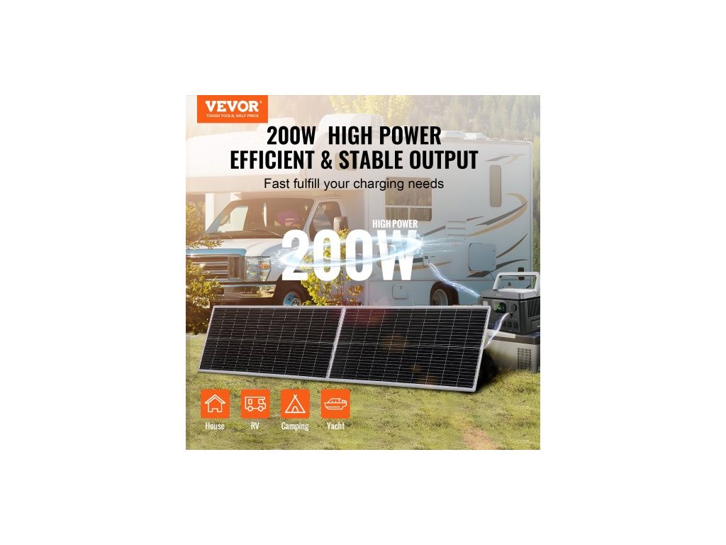 Sada monokrystalických solárních panelů 200W, 2 ks monokrystalických solárních panelů + regulátor nabíjení, 23% vysoce účinný monokrystalický fotovoltaický modul, vodotěsnost IP68 pro obytné vozy, lodě, kempování a systémy mimo síť