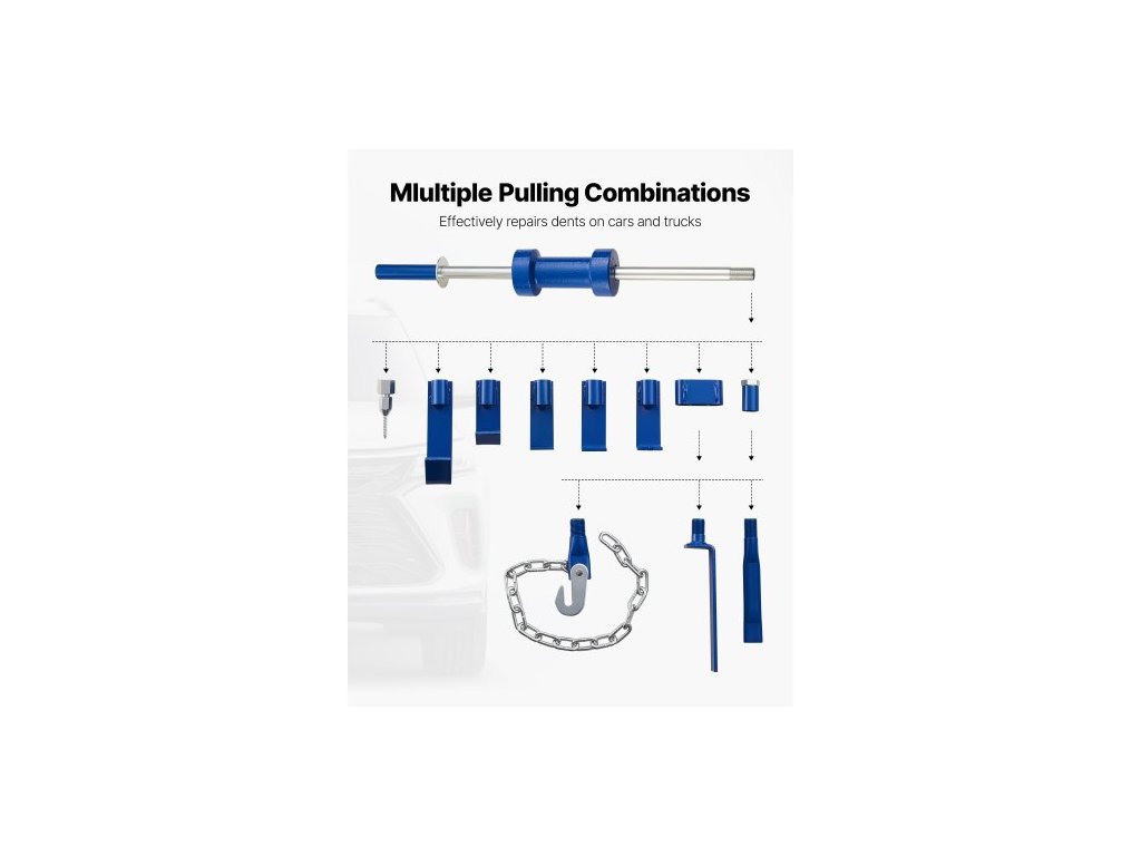 Sada na odstraňování promáčklin , 5,9 kg 14v1 posuvné kladivo, sada na odstraňování promáčklin, opravy karoserií a nákladních vozidel, nástroj na odstraňování promáčklin z automobilů, rám na opravu s přepravním pouzdrem, prodlužovací tyčí,