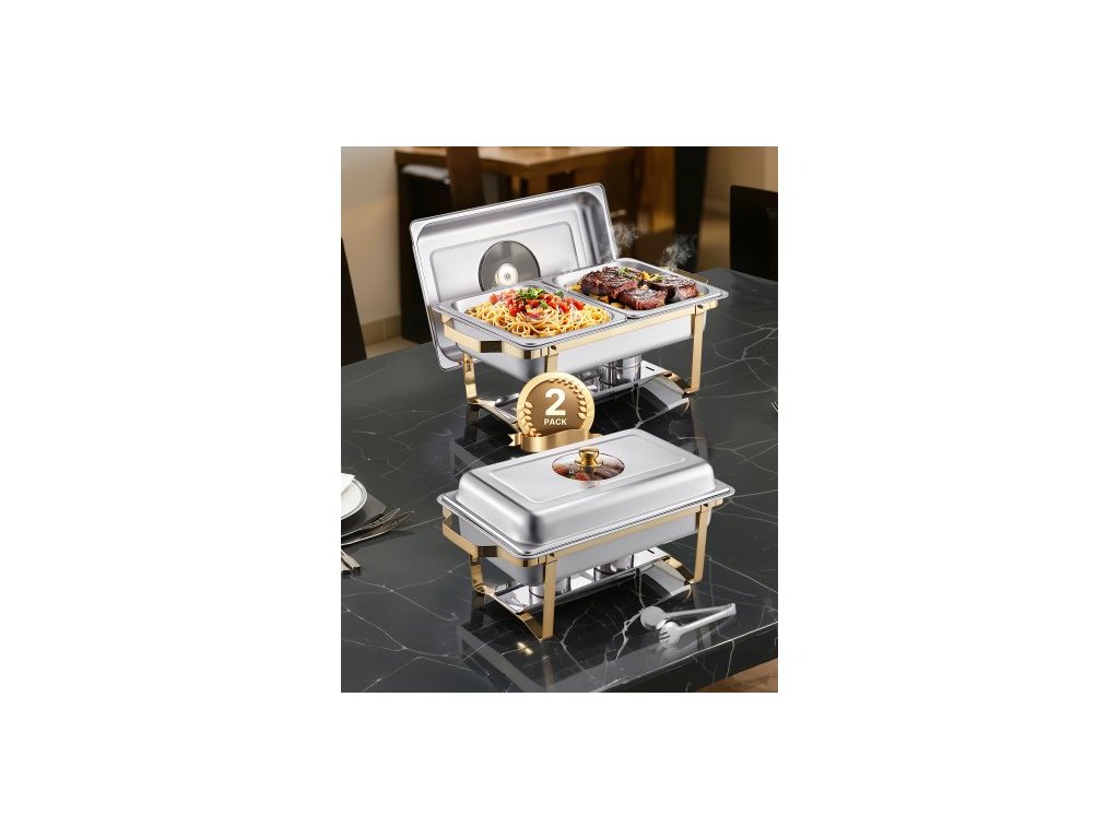 Objem pánve na vodu plné velikosti: >=12 qt / 11,5 l,Barva: Zlatá,Číslo modelu položky: HZ-433B,Hmotnost výrobku: 19 lbs / 8,75 kg ±5 %,Množství: 2,Objem pánve poloviční velikosti: 4 qt / 4 l,Materiál: Nerezová ocel,Způsob ohřevu: Palivo