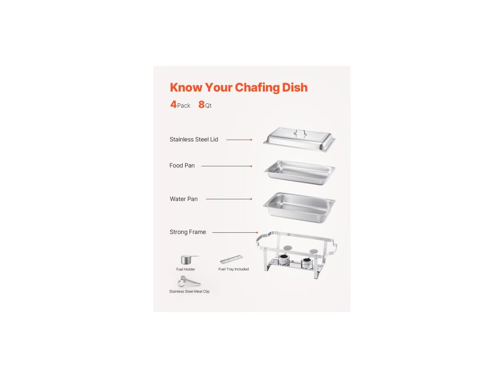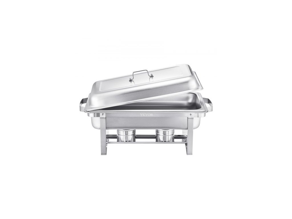 Sada talířů Chafing Dish Buffet, sada 4 kusů o objemu 8 qt, nerezová ocelová podpěra se 4 pánvemi plné velikosti, obdélníkový ohřívač nádob na catering s víkem, stojanem na pánve s vodou, držákem na palivo, pro svatby, večírky, bankety, stříbrná